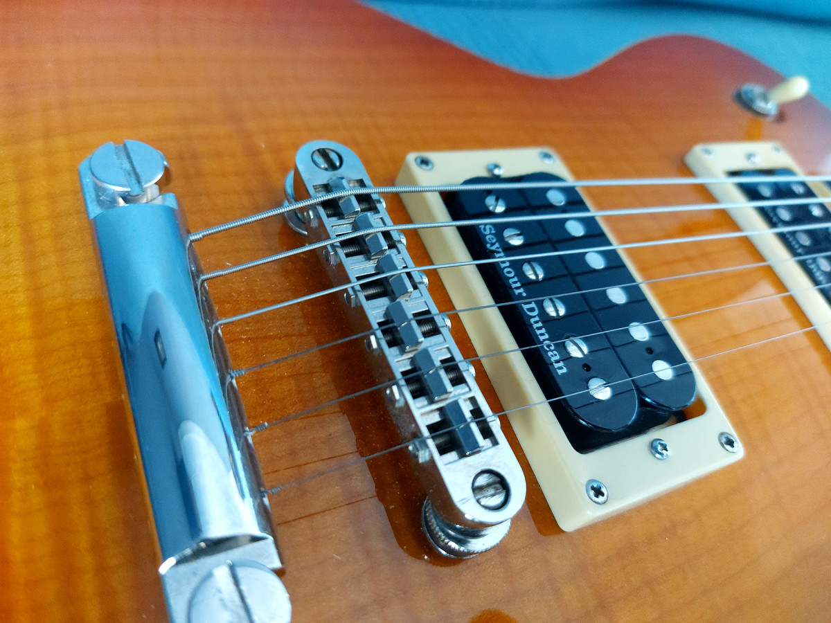 - Sustitución de las pastillas originales por una Seymour Duncan SH-4 JB en puente y SH-1n 59 en mástil.