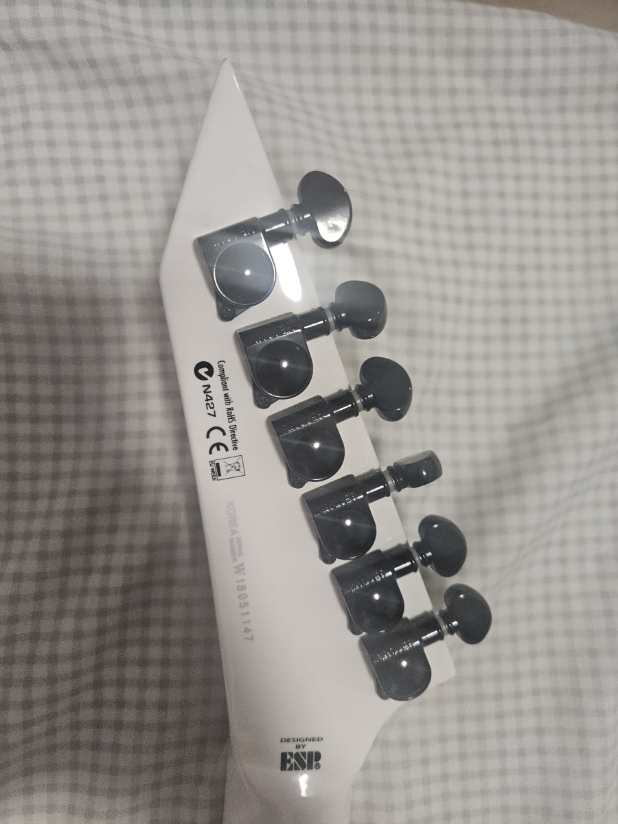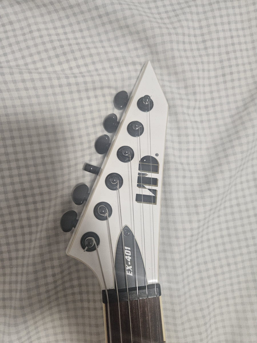 ESP LTD EX 401 en color snow white. Guitarra hecha en Korea. Pastillas EMG 81 y 60. Diapasón de palorrosa y Contrusccion set - thru.