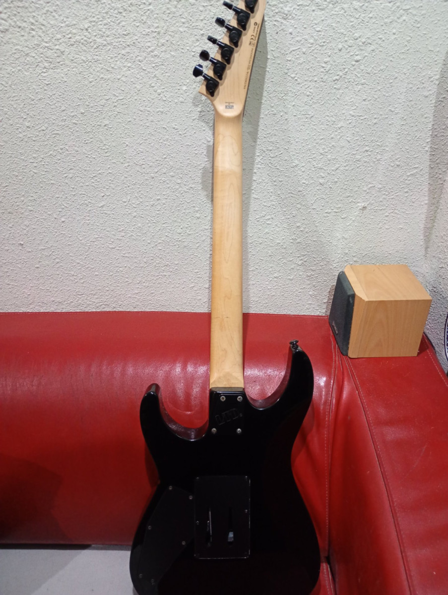 Cuerpo de tilo, mástil extrafino de arce en forma de U y diapasón de palisandro con 24 trastes extra jumbo e incrustaciones de calaveras. Incorpora dos pastillas humbucker LH-301 diseñadas por ESP y un puente de trémolo Floyd Rose Special.