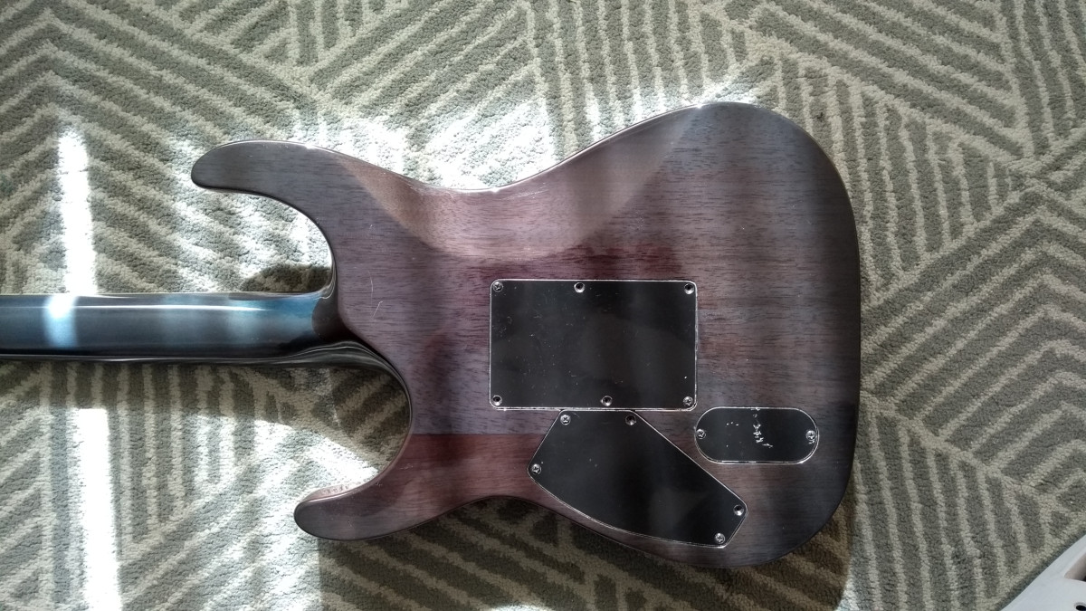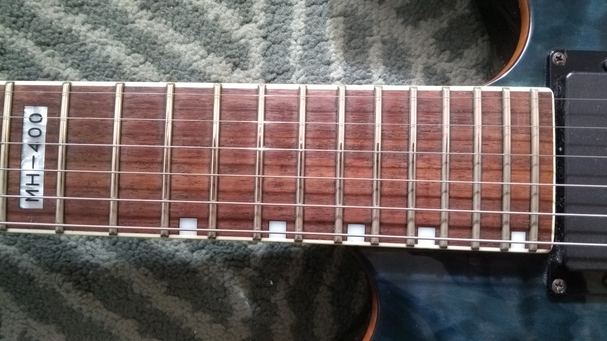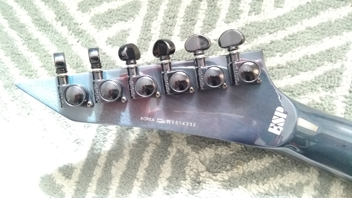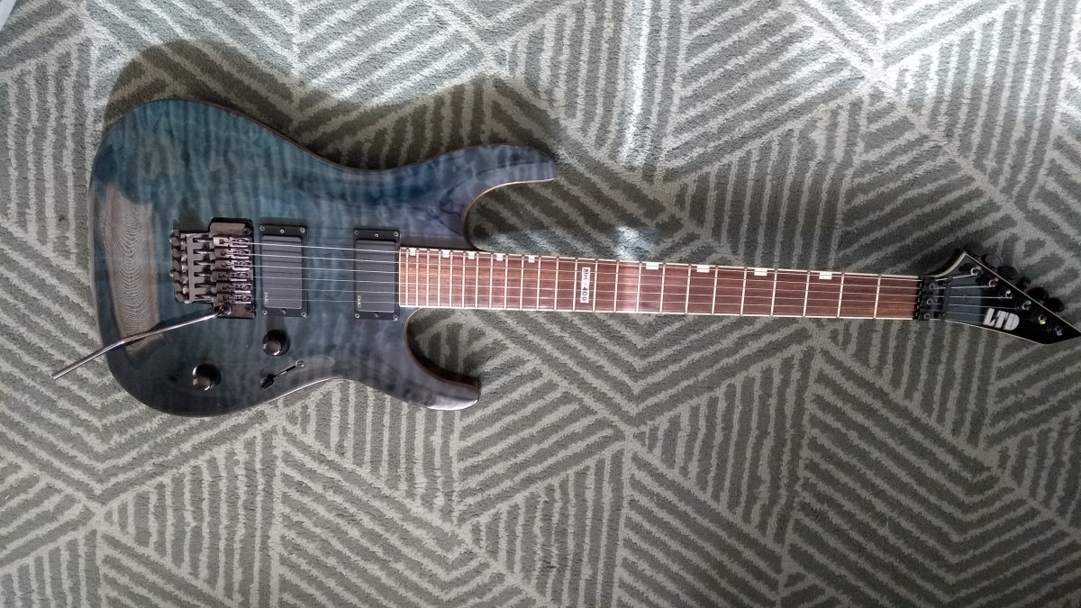 ESP LTD mh-400 fabricada en Corea. Madera de caoba, trastes de acero inoxidable sin signos de desgaste. Mastil cómodo y rápido. Le cambié el puente original por un Gotoh 1996gt que tiene el mismo radio que el mástil. Tiene las pastillas que montaba de fabrica ( EMG 81-85 activas). Siempre usada en casa. He sido el único dueño de la guitarra.