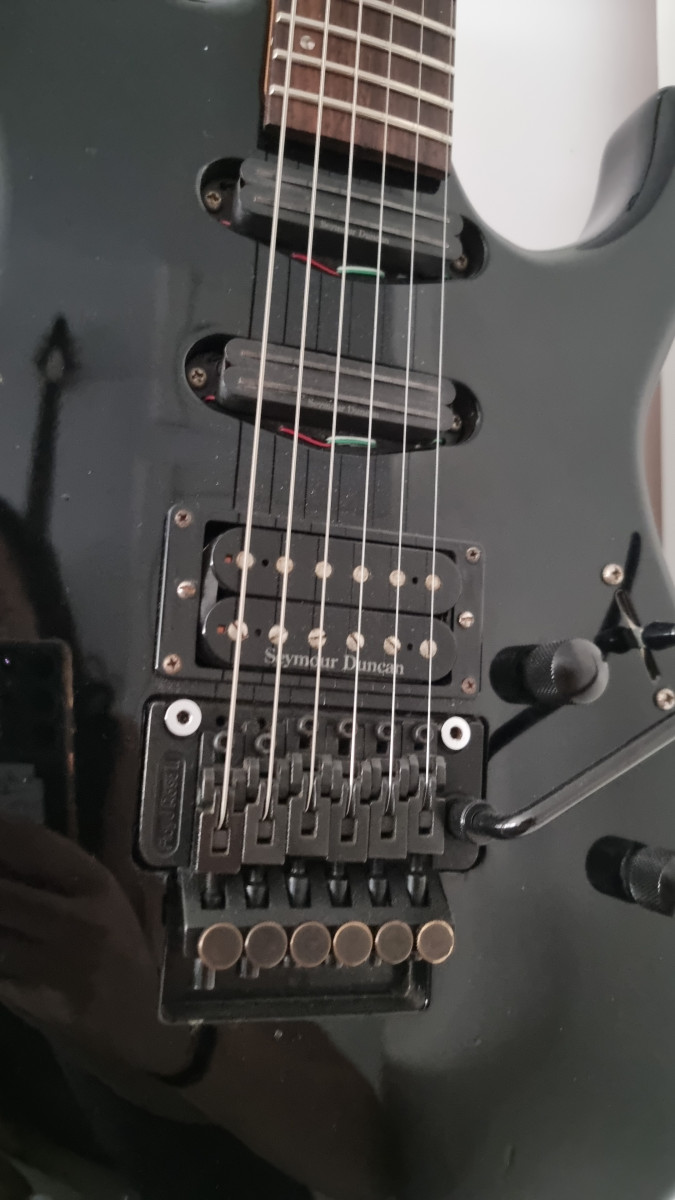 Pastillas originales Seymour Duncan, Clavijero made in japan, puente Floyd Rose II de la época.