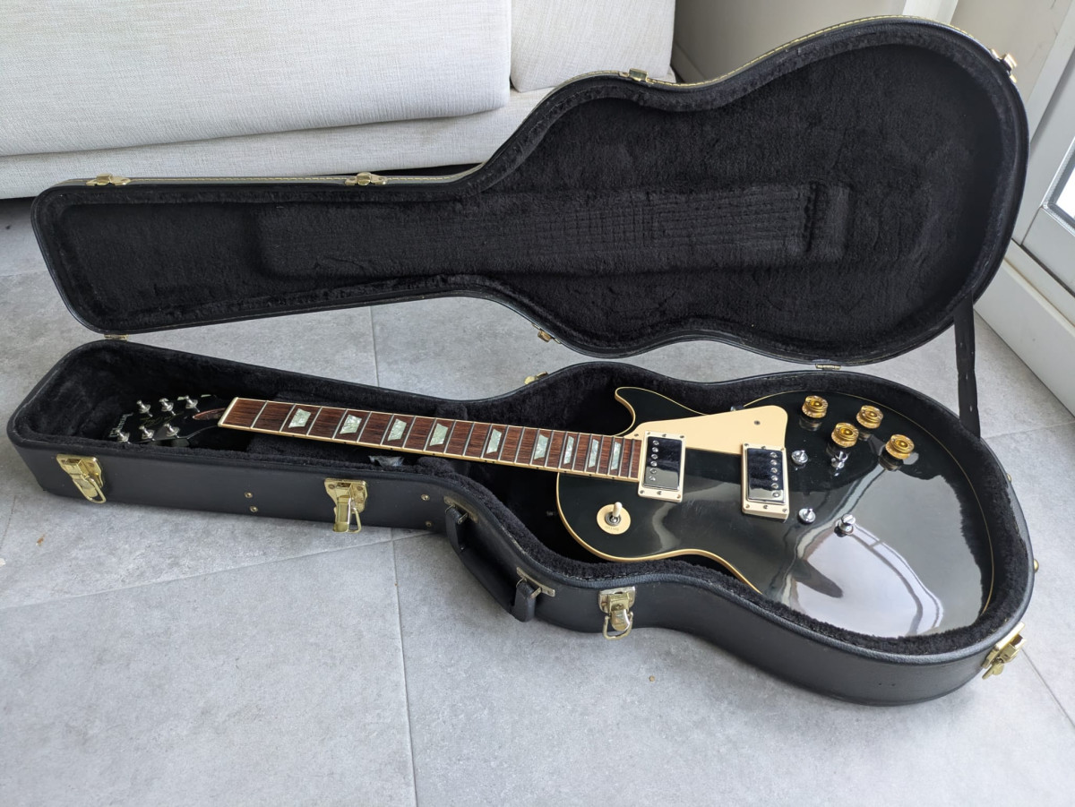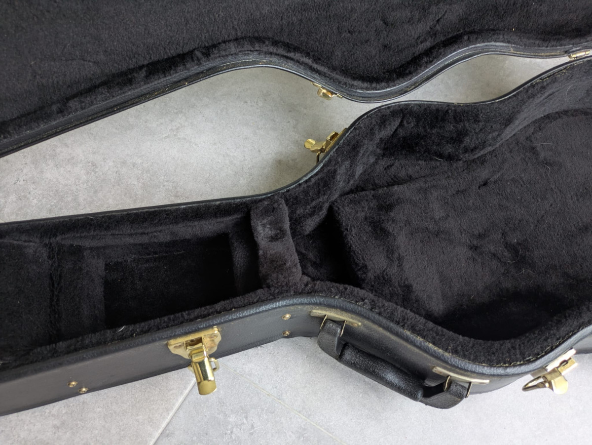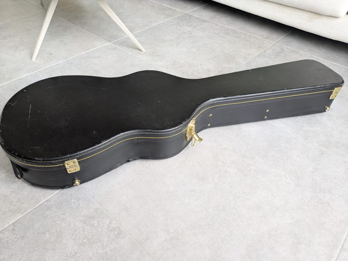 me ha llegado este estuche con una les paul de final de los 90. evidentemente es mas antiguo,no lleva logos pero comparandolo se ve que es como los que se vendian con las Gibson con otros de los 70-80'