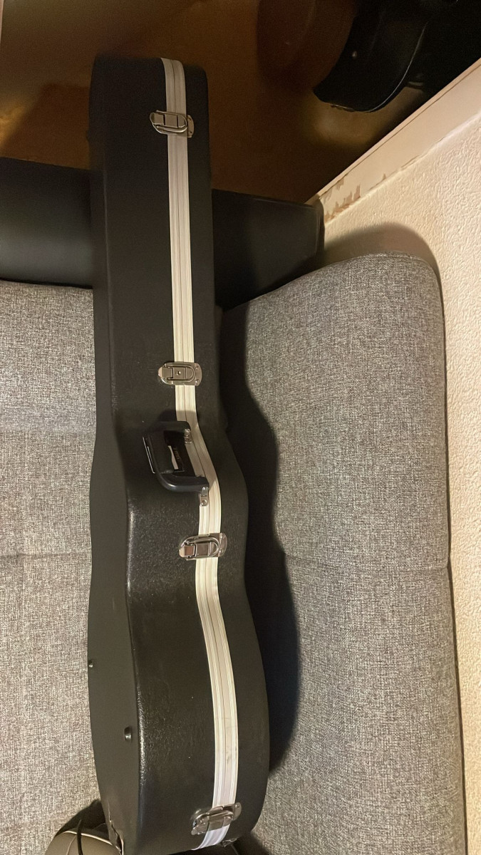 Procede de un cambio, es el estuche mas grande y profundo que he visto, no es como los actuales, esta fechado en 2018, profundo por dentro son 9 cm y a estuche cerrado son 17 cm., esta nuevo salvo el toque que tiene y detallo en las fotos, nada que afecte a su funcionalidad, yo lo puse cinta aislante pero imagino que un manitas lo deja perfecto, no cambios.