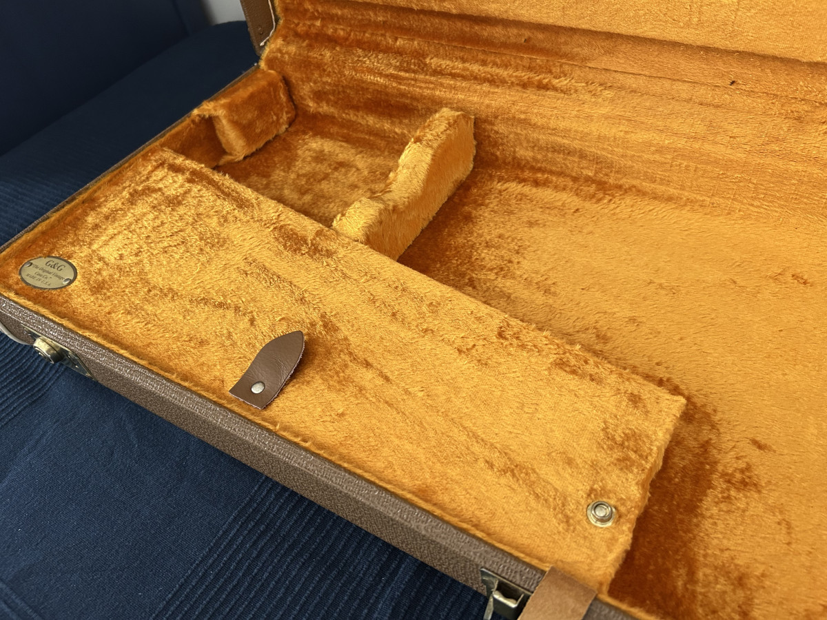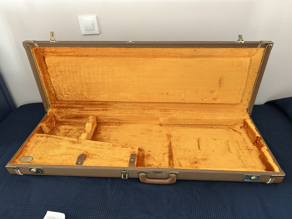 Vendo estuche G&G original de una Fender Rory Gallagher Custom Shop de 2008. Está en un estado excelente. Tiene uso, pero no abuso. Alguna marca sin apenas importancia y pérdida de lustre en los herrajes, como es normal, teniendo casi 18 años. Los cierres funcionan perfectamente aunque no conservo las llaves. El interior está más que perfecto.