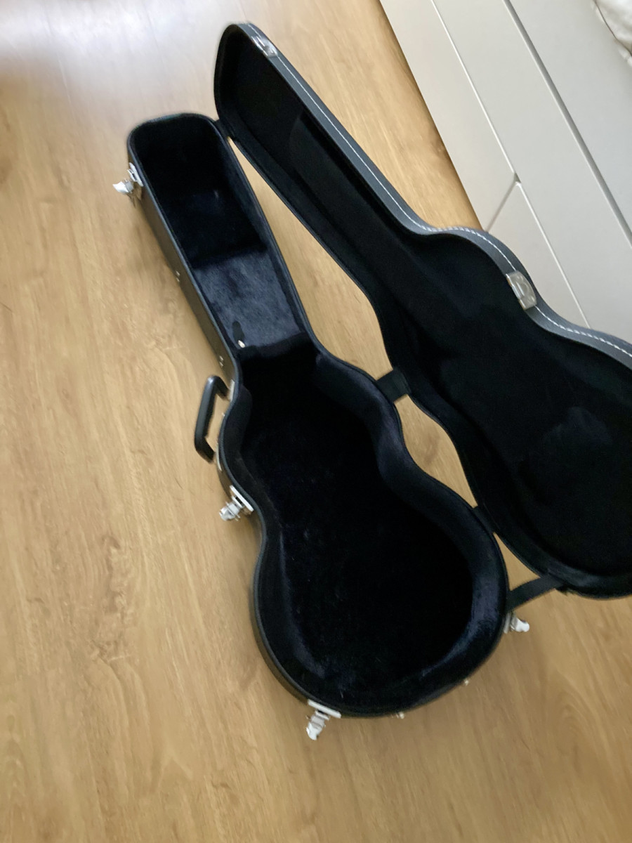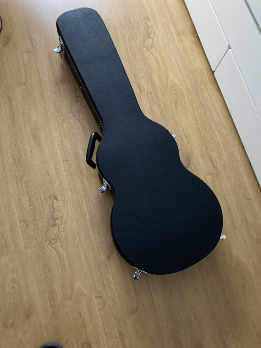Estuche Thomann para guitarra Les Paul. Lo he tenido con una Epiphone Les Paul Special y también con una Epiphone Les Paul Standard, y encajaba perfectamente.
