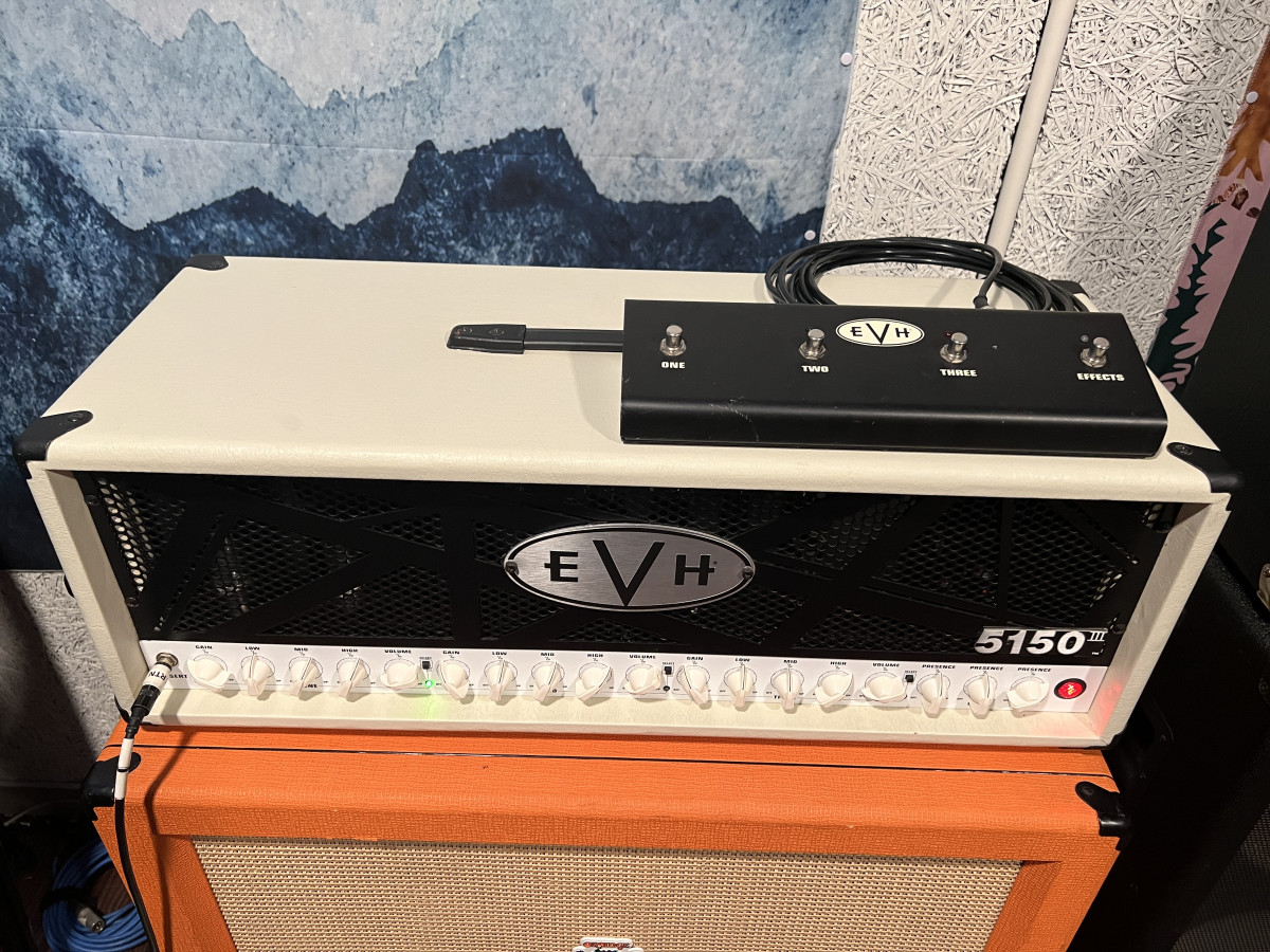 Vendo mi cabezal EVH III de 100W en su versión de tolex blanco. Va con su footswitch original para cambiar de canal y un flightcase casero de triple cartón muy resistente (al menos para su conservación en el local).