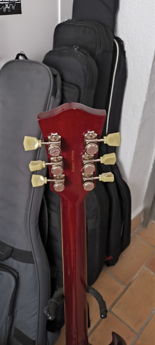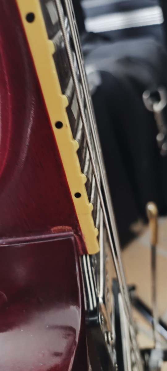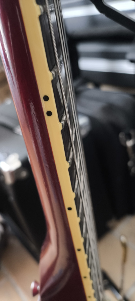 Tiene hecho un neck reset para corregir el ángulo positivo que traía y evitar wolf notes con el Bigsby (Broken Fingers/Tokaa/Spidey12).