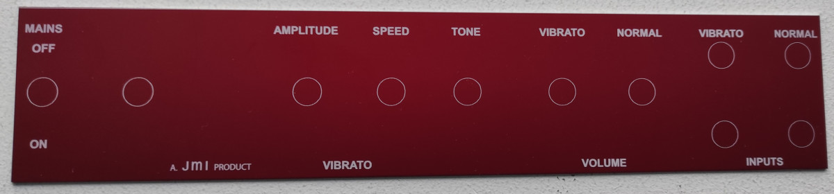 A la venta un faceplate para ampli en alumio en color rojo con serigrafía en blanco. En principio se hizo uno estilo VOX AC10 vintage pero puede servir para cualquier ampli original o de proyecto.