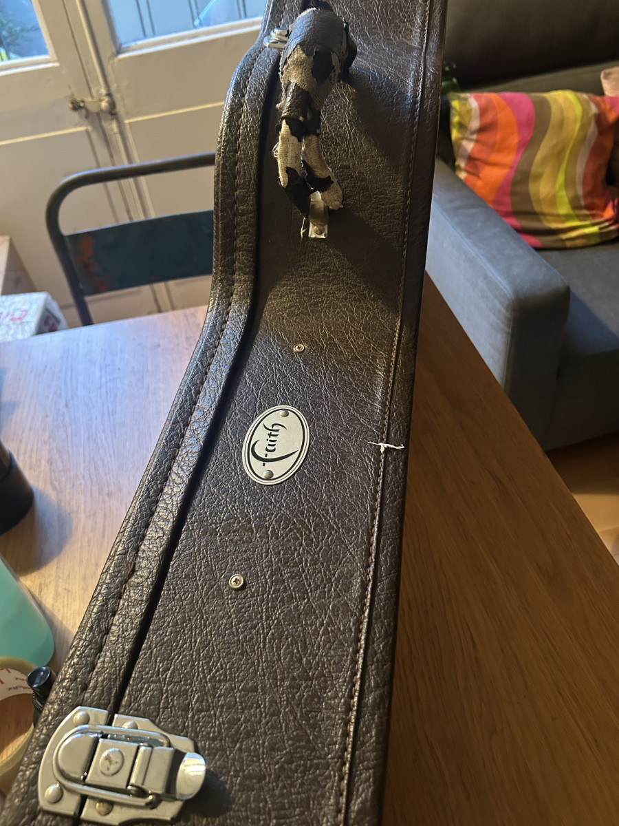 Tiene bastantes marcas de uso y un par de golpes (puedes ver los detalles en las fotos), pero la guitarra es perfectamente funcional. Incluye su funda dura original.