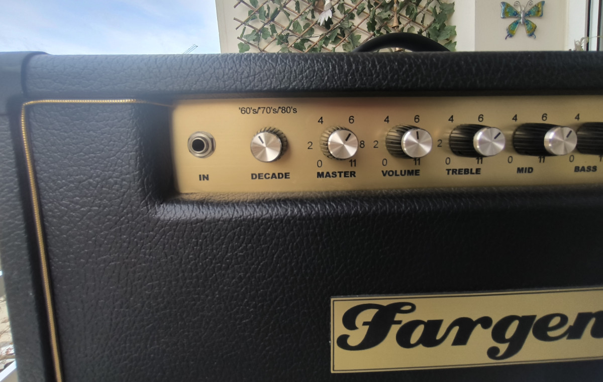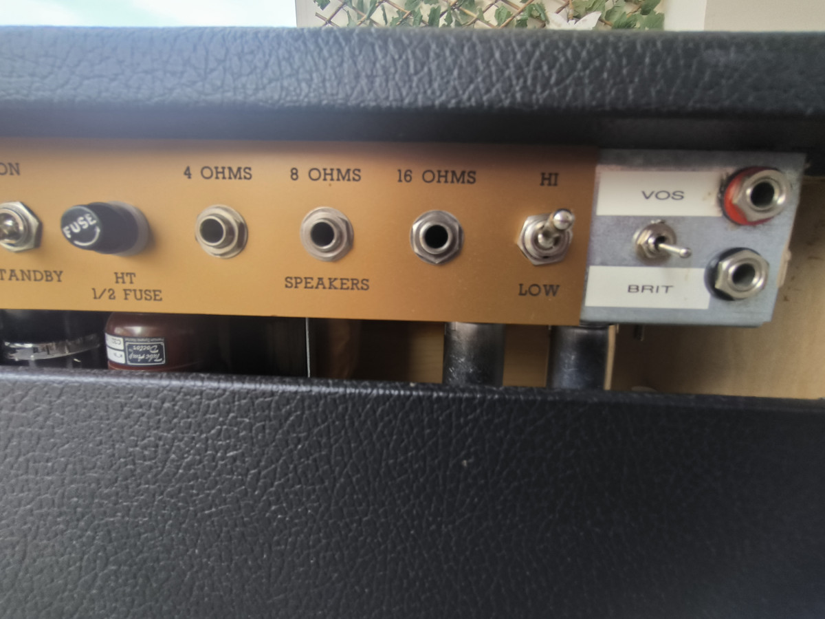 Tiene atenuador incorporado, salidas de altavoces de 4, 8 y 16 ohm, modos Brit y Vos, selector de potencia High y low, triple eq, master y volumen. Y lo que le hace realmente especial, un selector "decade" con 3 sonidos plexi brutales: