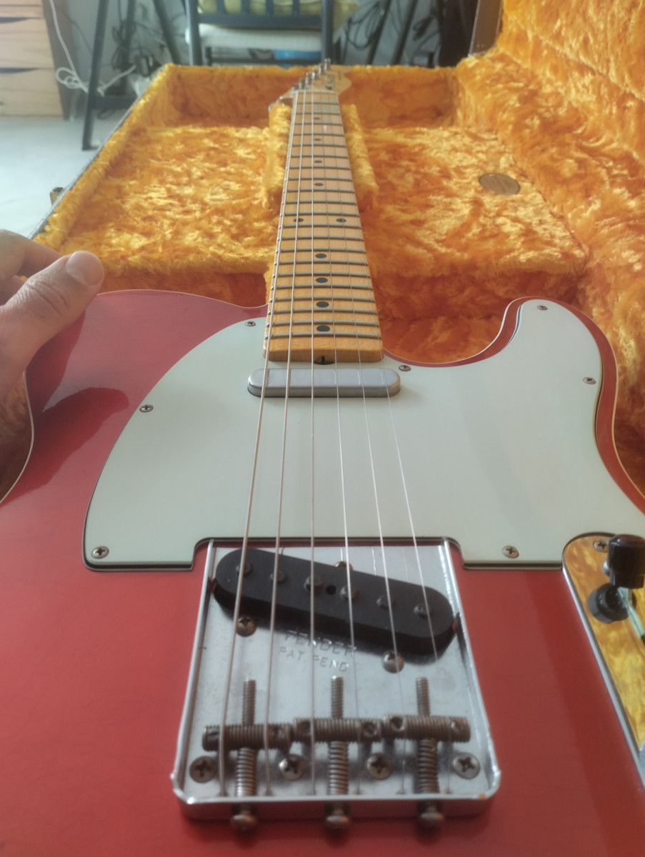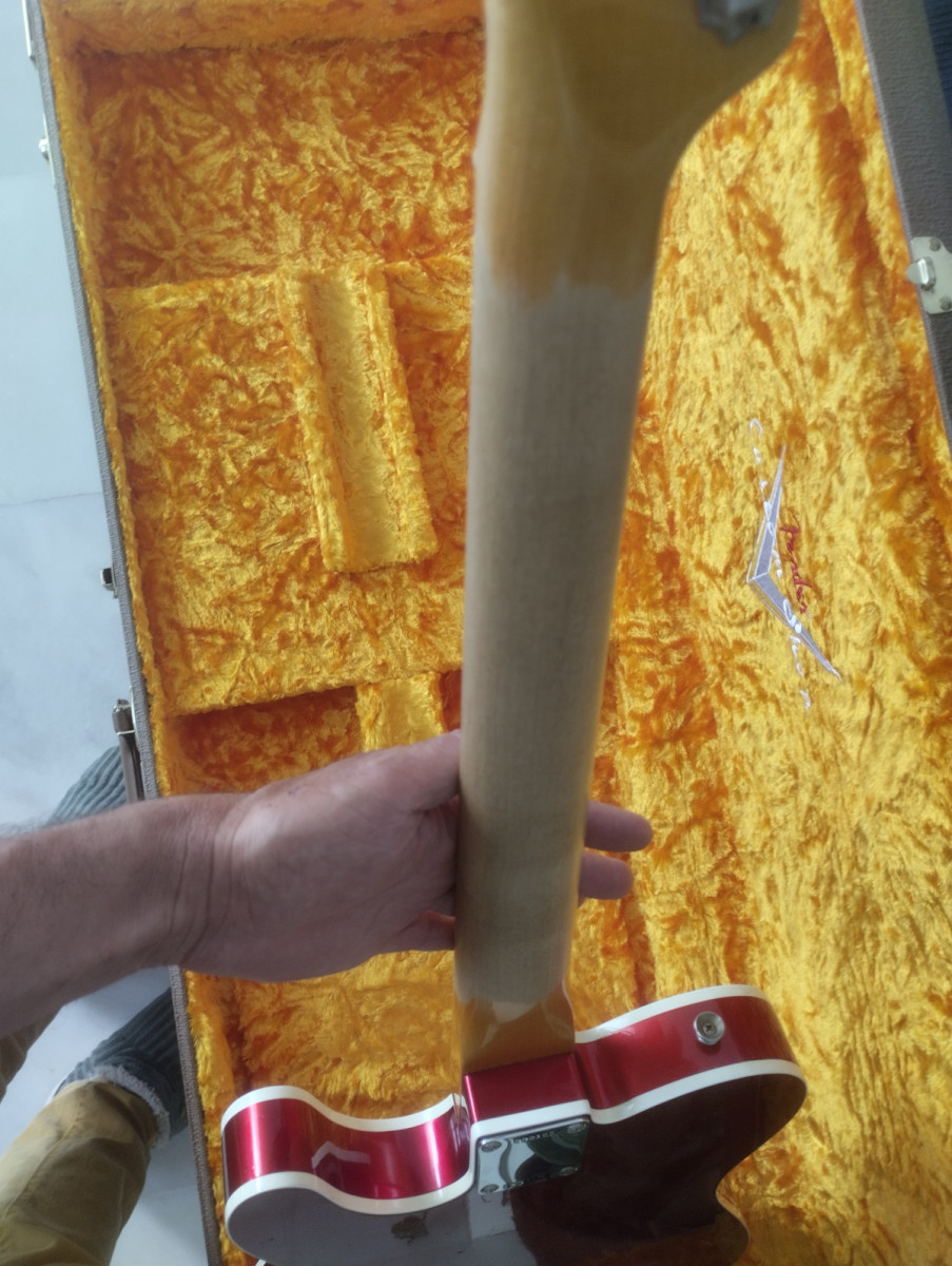 Cuerpo de “alder”, acabado de nitrocelulosa candy apple red, mástil “maple”, radio 9,5, pastillas 63 custom tele bridge y 63 custom tele neck, peso 3,440 Kg. Resto de especificaciones en las fotos.