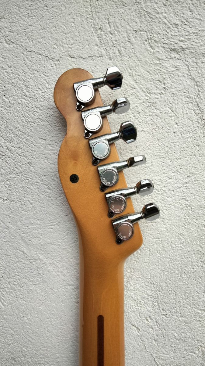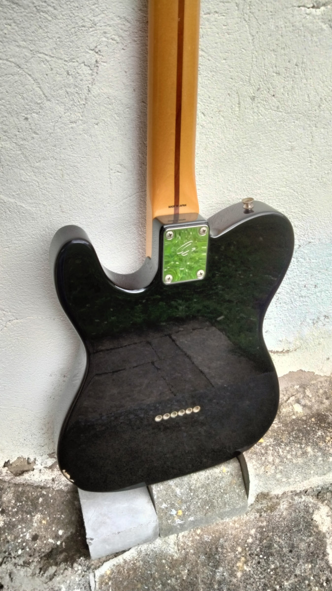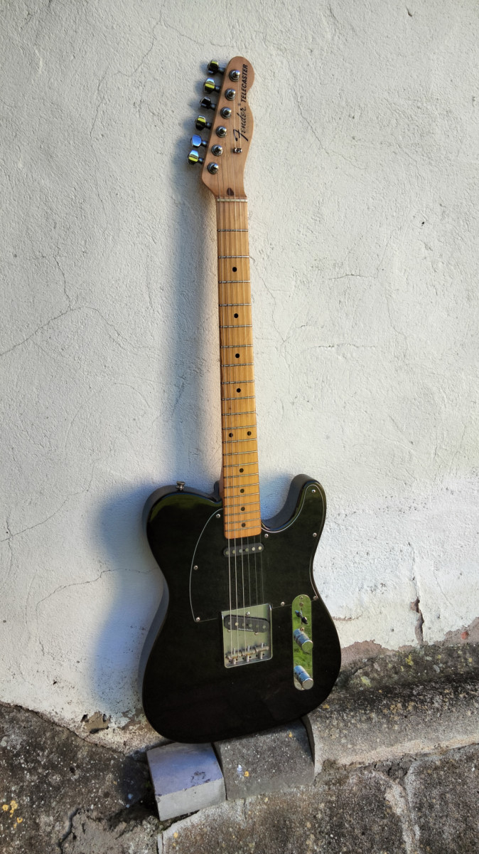 Fender Telecaster TL 72 - 55 original japonesa del 84 (E Serial), contemporánea de las JV. Es una guitarra muy vibrante, con un sonido muy articulado, rico en armónicos mayores, muy autoritaria y muy ligera (3.3kg). Cuerpo en fresno de dos piezas, mástil en arce de una pieza.