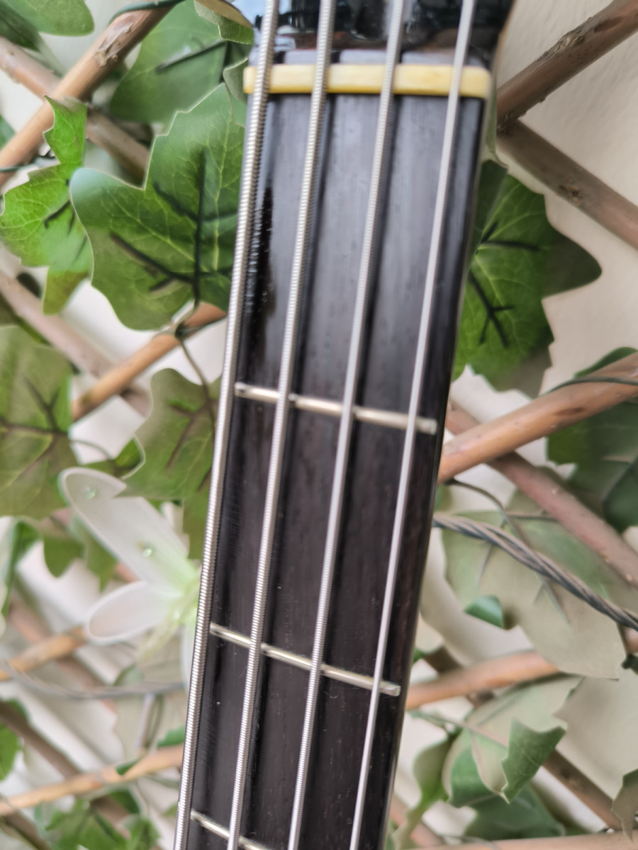 Algún roce y signo de uso propio de haber sido tocado, pero nada de importancia, cuerdas nuevas 45-100 recién puestas.