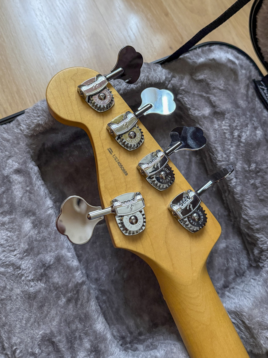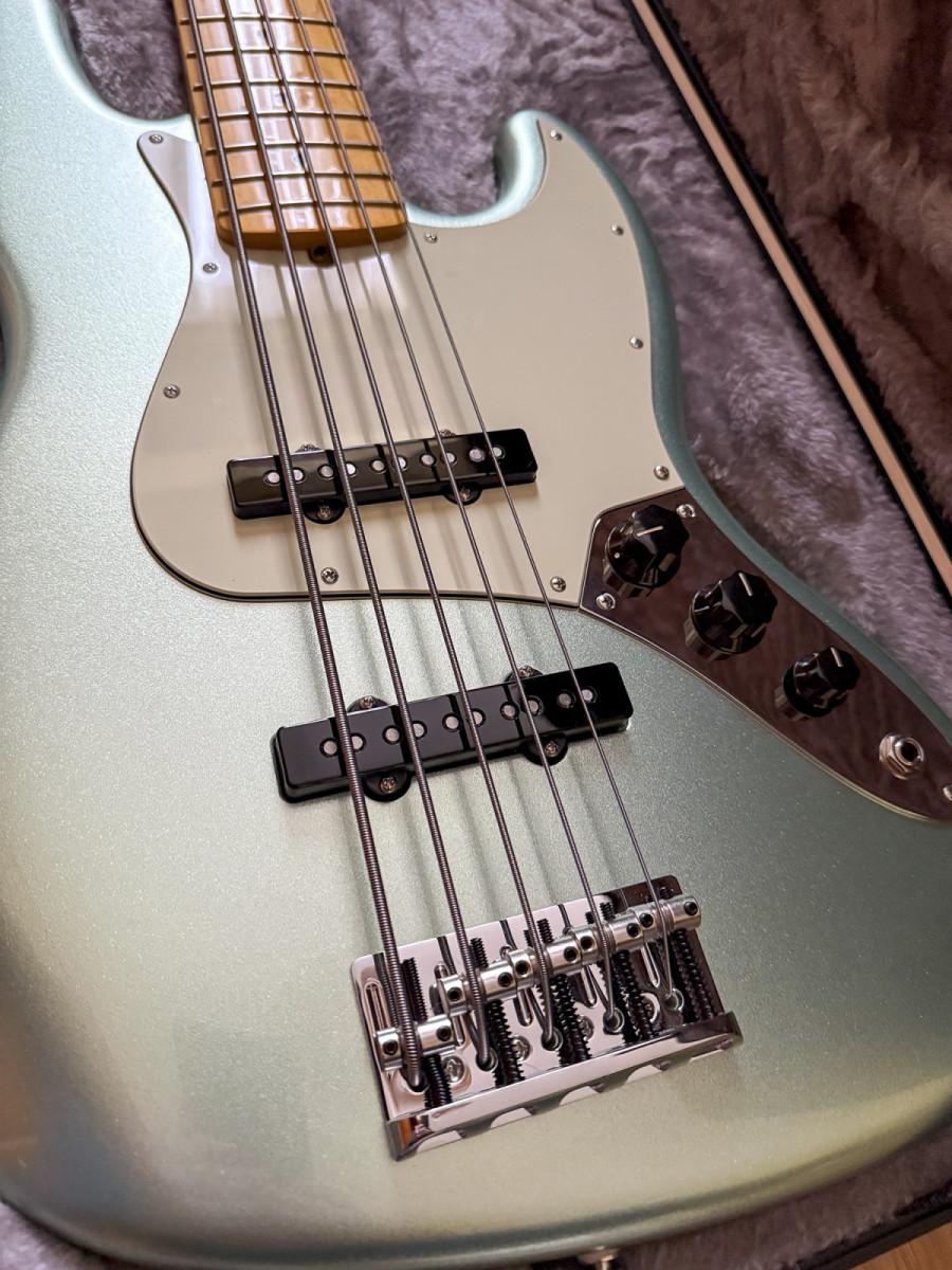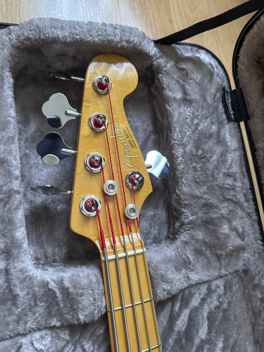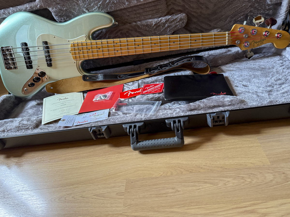 Vendo Fender AM Pro II Jazz Bass V, acabado Mystic Surf Green. El motivo de la venta es que no me acabo de hallar con las 5 cuerdas. Comprado en marzo de este año. Esta nuevo, sin marcas de uso. Solo cambiadas las cuerdas por unas Rotosound Swing Bass. De peso ronda los 4,3 Kg.