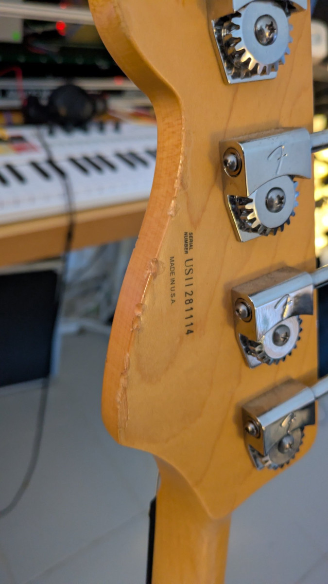 Bajo profesional fabricado en Estados Unidos, electrónica activa original Fender Deluxe, sonido Jazz Bass versátil y de alta calidad.