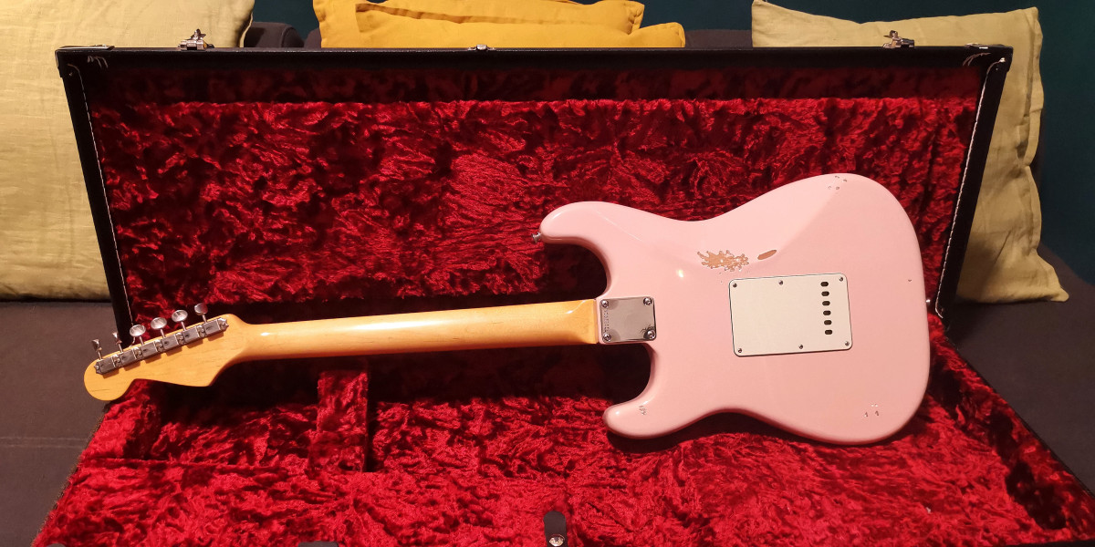 Se trata de una Stratocaster con todas las de la ley, y que suena y se toca como deseamos en nuestros mas lujuriosos sueños. Ademas es rosa!! Quien no necesita una? Da gusto verla...