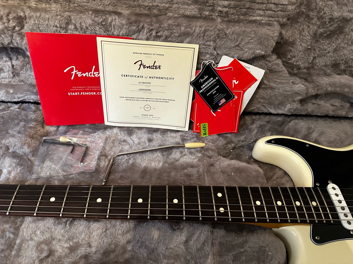 Professional II Stratocaster en color blanco crema y golpeador negro.