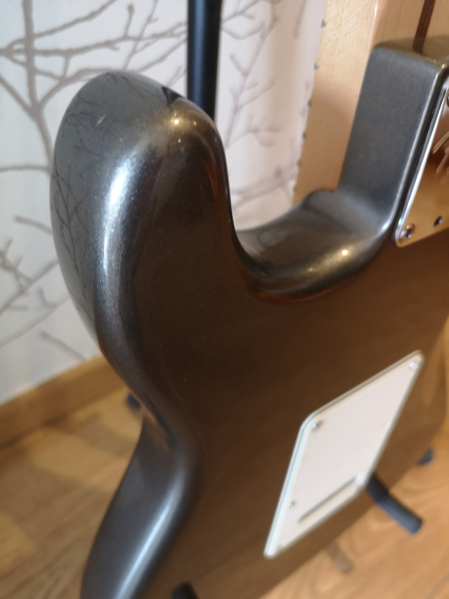 Standard americana del 2007. Color silver surfer precioso. Se compró en el foro y la vendo por acumulación de material. SOLO la cambiaría por una Ibanez RG652 SIN FLOYD. La guitarra está muy bien de todo para sus añitos. Vino con 3 lace sensors gold y la cejilla es la que llevaba el modelo Signature de Buddy Guy y creo que de Clapton en los 90. Por eso, parece de primeras parecería una signature y no una standard. Se le cambió la gold del puente por una red más cañera (salida tipo humbucker) para hacerla más versátil aún. Entrego también la gold, que son casi 100 pavos de pastilla. También se le puso un push-pull de fender para poder hacer más combinaciones con las pastillas, al estilo Gilmore.No tiene funda, aunque la puedo enviar en caja específica de guitarra, aunque siempre daré prioridad al trato en mano.