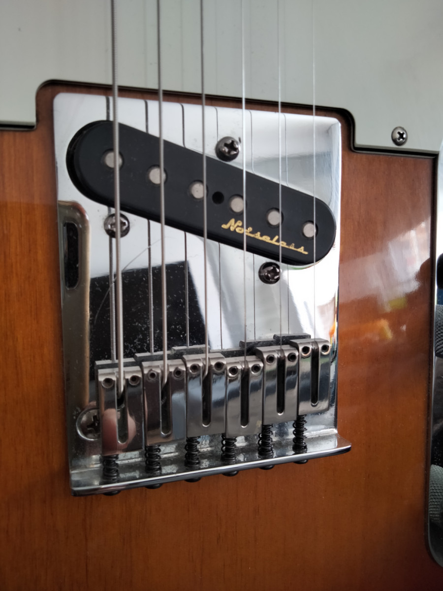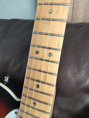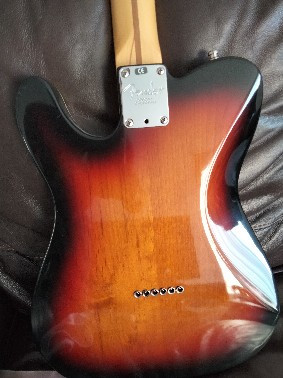 Espectacular Tele 3-Color Sunburst en un estado absolutamente impresionante, todo original. Cuerpo contorneado, mástil de arce perfil C medio con 22 trastes Medium Jumbo (en perfecto estado). Pastillas noiseless específicas, conmutador de 3 posiciones, 1 control de volumen, 1 control de tono. Incrustaciones de puntos de abalón. Golpeador verde menta. Cierres de correa Schaller. Puente moderno y silletas en acero pulido. La vendo con el estuche original.