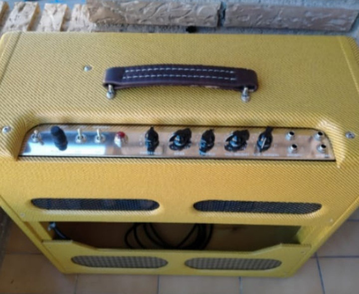 Clon de Fender Bandmaster57 laquered tweed 26w hecho punto a punto con los mejores componentes, mueble de pino extra ligero y altavoces Jensen montado por DrTubeAmps.
