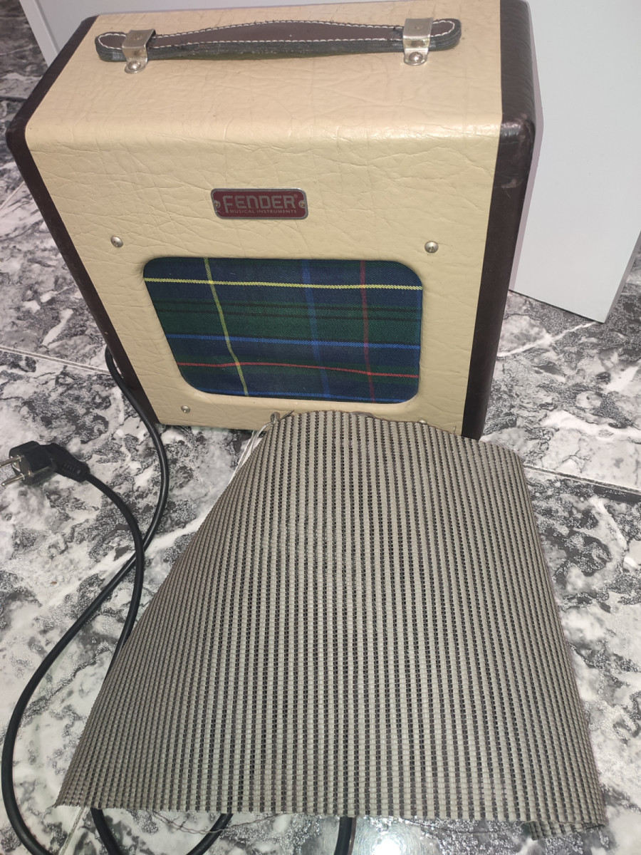 El anterior dueño le cambió la tela de la rejilla por esa tan original, pero adjunto un retal de tela Bluesbreaker (Cuarta foto) que tenía por casa que nunca llegué a poner por si quieres cambiársela tú.