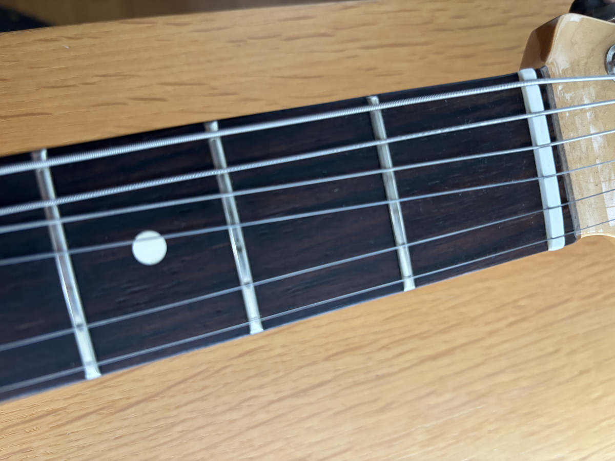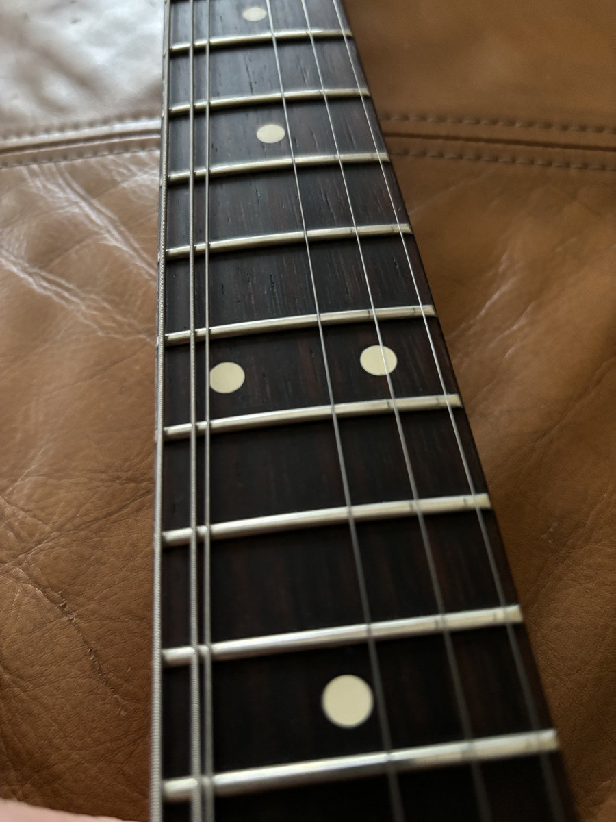 Radio de 12, trastes a tope. No tiene ni marcas ni golpes ni dings ni dangs.Nada que destacar.