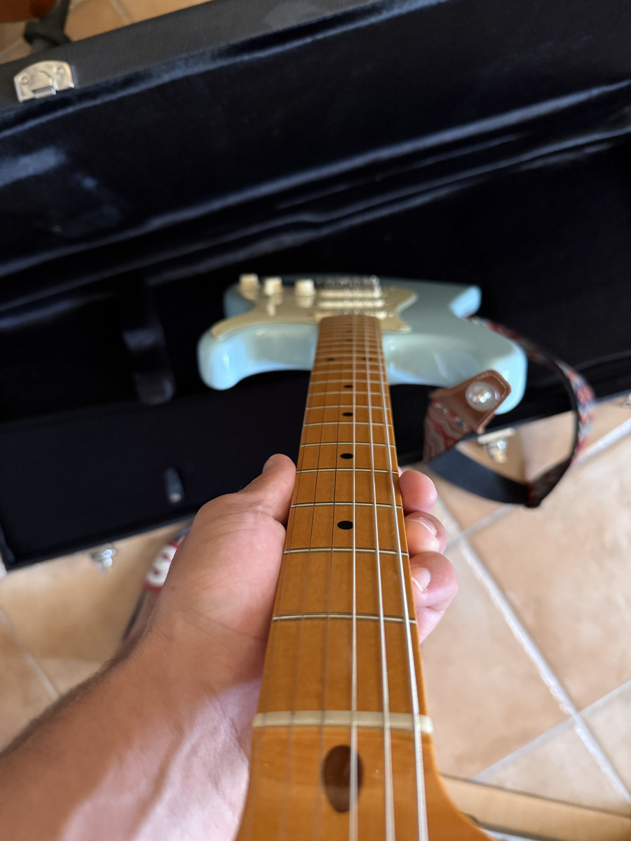 Estado impecable. Si necesitan mas fotos, puedo pasarlas por whatsapp. La envio puesta a punto y con cuerdas Ernie Ball Silver Slinky (John Mayer).
