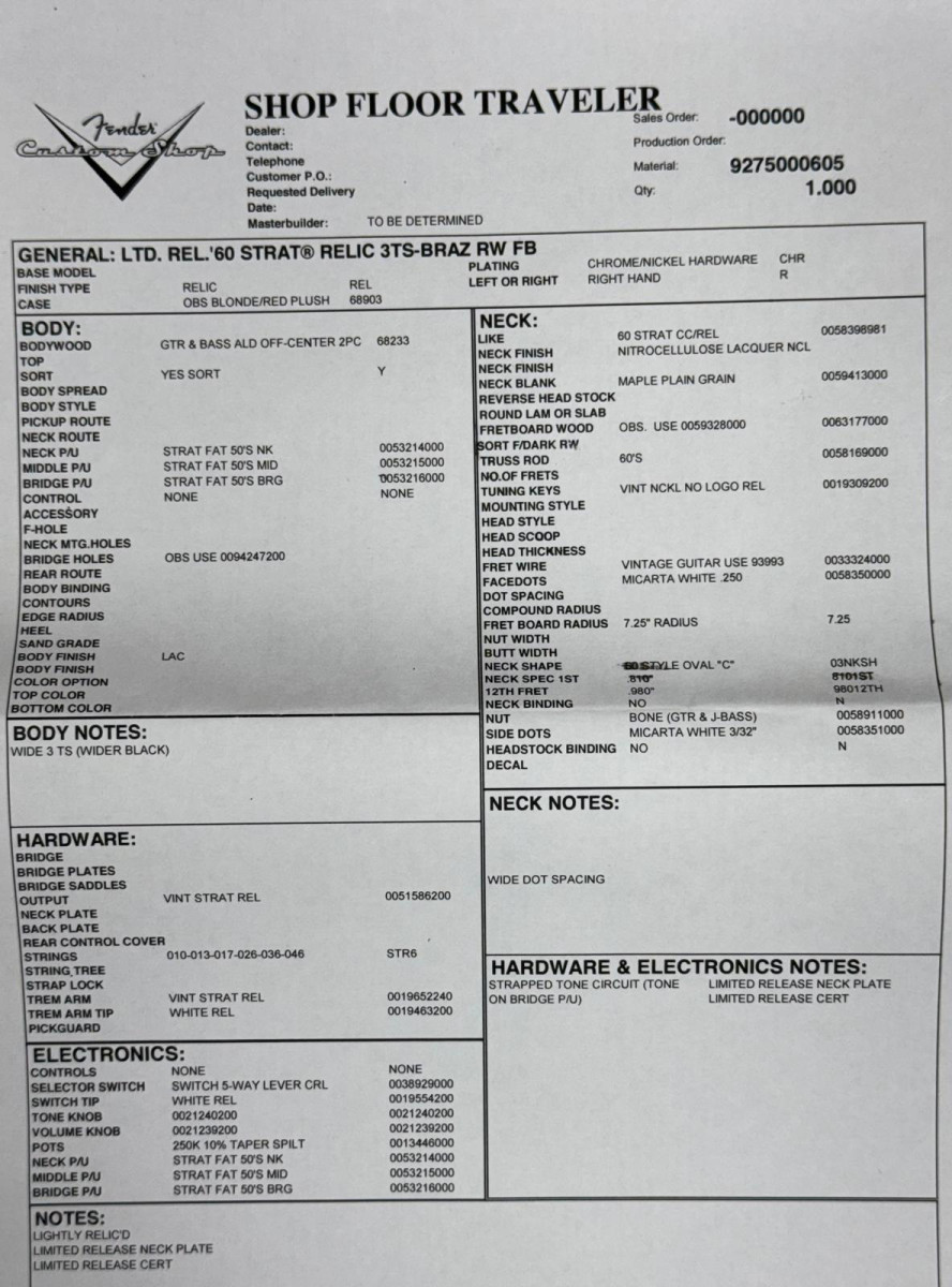 Fender C.S. Masterbuilt Stratocaster 1960 Shishkov Brazilian Rosewood L.E.