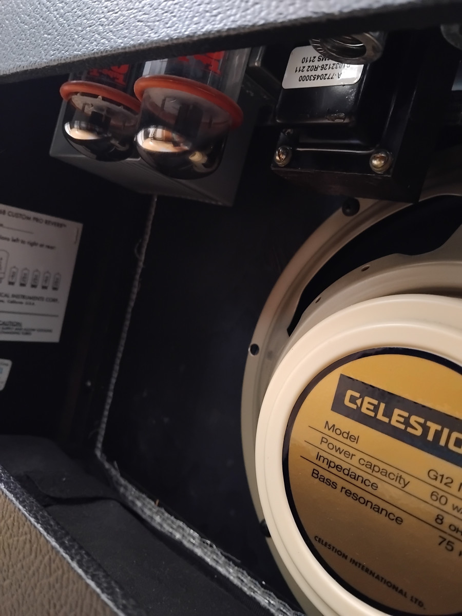 Amplificador afinado por Pedro Vecino, válvulas de potencia nuevas de calidad y ajuste fino de bias en ellas por Pedro, cable de altavoz de calidad cambiado por el original que era muy fragil y válvula AT7 n.o.s 40€ (se entrega la original junto con todos los accesorios que salen en las fotos) gomas en las patas para evitar vibraciones, en general mucho mejor que nuevo, en sonido y fiabilidad, listo para los escenarios, fue una mejora de 400 euros ya que además solucionaba un problema que viene de serie en estos amplis con la reverb, cualquier consulta a los realmente interesados por privado.