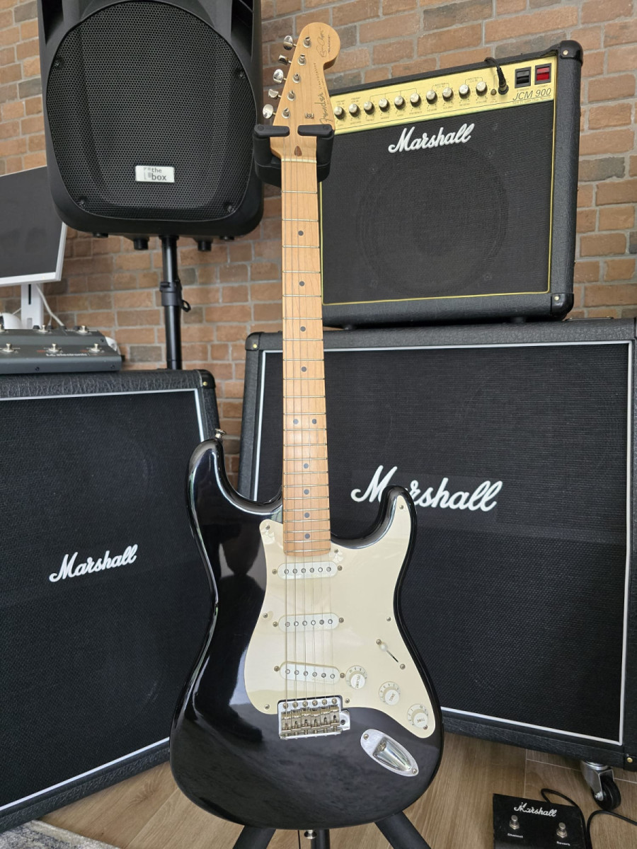 Recién revisada por luthier, cambio de cuerdas y de la pila interna. además al abrirla pudo ver que esta unidad participó en un "Germany show en 2004",para ser el una de las guitarras seleccionadas por fender custom para representar al modelo, con lo que la calidad está fuera de toda duda.