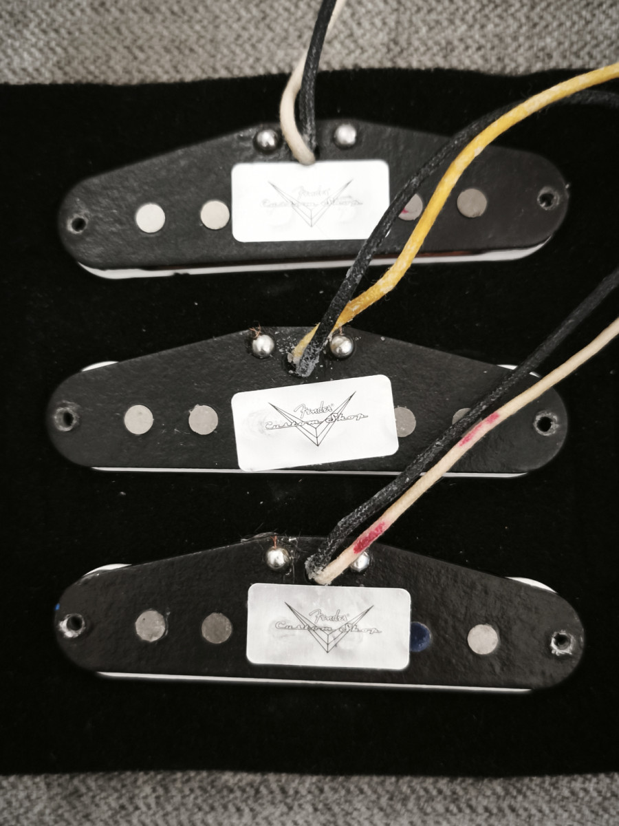 Vendo set de pastillas Fender Custom Shop Fat 50 para stratocaster, puestas una vez, probado que no es el sonido que buscaba y puestas de nuevo en su caja.
