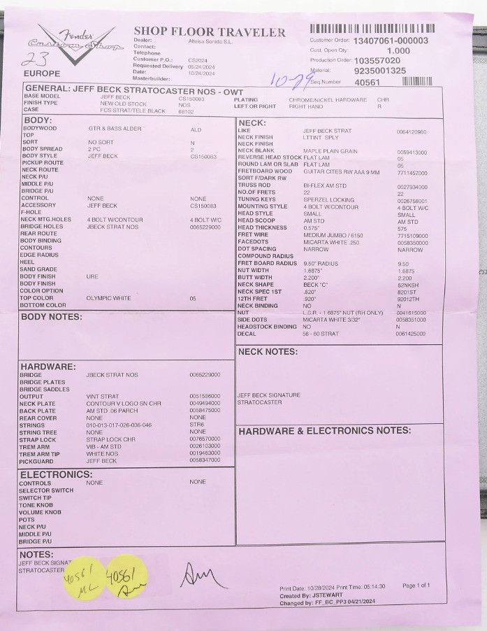 Fender Custom Shop Jeff Beck Stratocaster 2024 - Olympic White