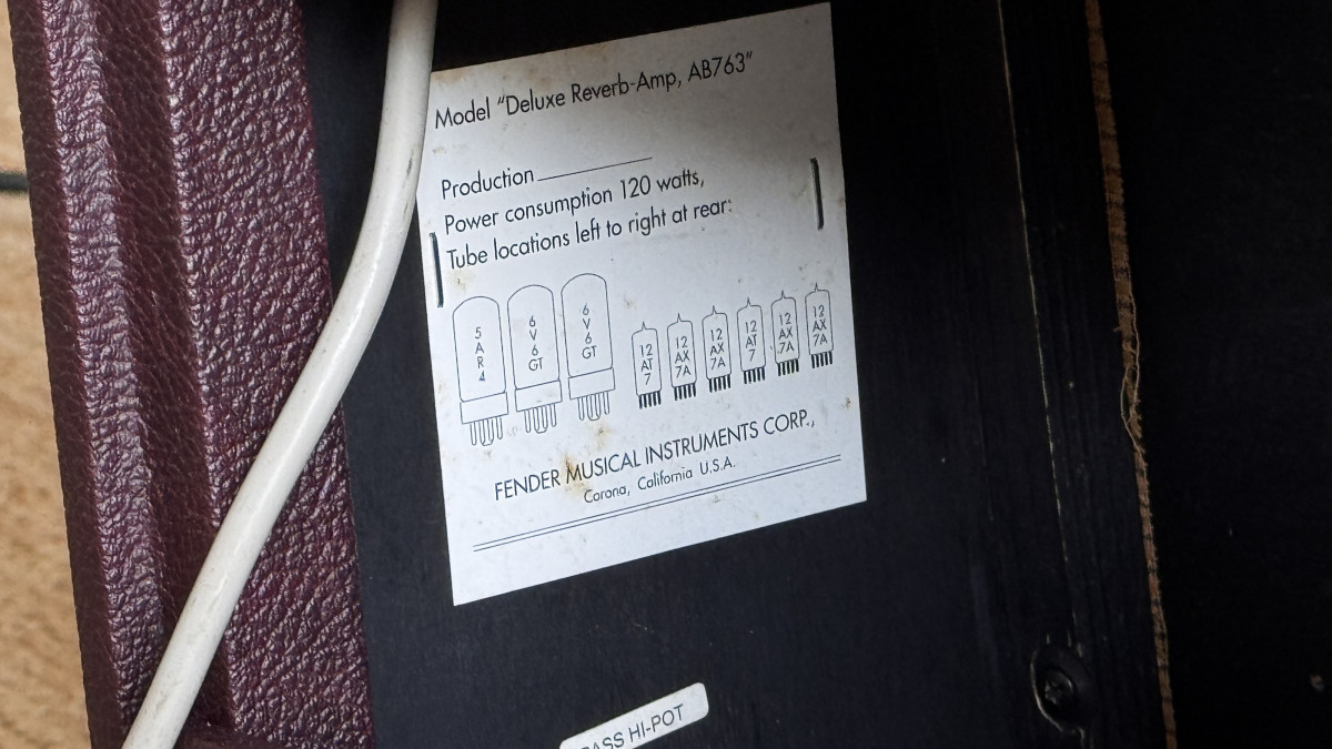 - el anterior propietario lo pasó por el técnico para hacer las típicas mejoras que todos los técnicos de amplis recomiendan para los DLX65 de serie a saber, cambio de condensadores principales, ajuste de BIAS, refuerzo de algunas soldaduras, cambios de jack, reaprete total de piezas (si vienen sueltas), cambio de todas las valvulas por TADS, etc etc. Básico hacerlo y esto ya lo convierte en un ampli muy diferente que suena a Fender glorioso y que es mucho mas fiable,