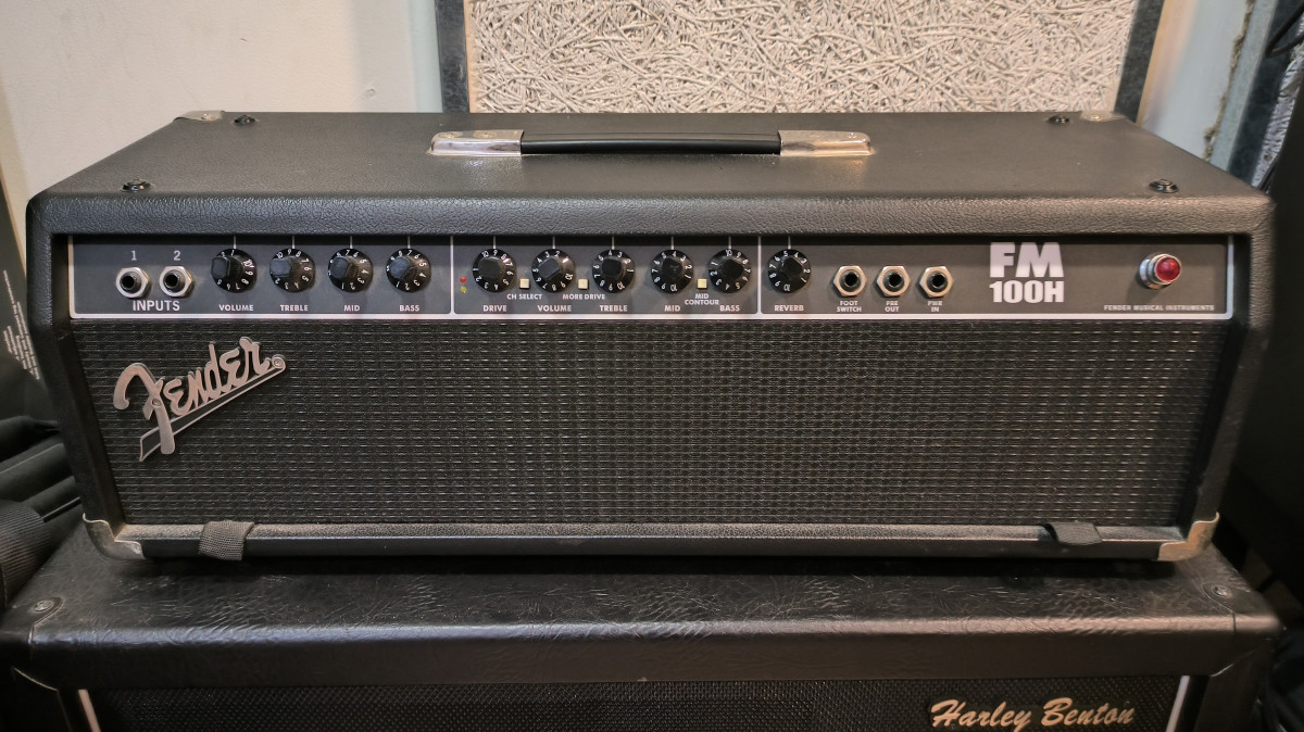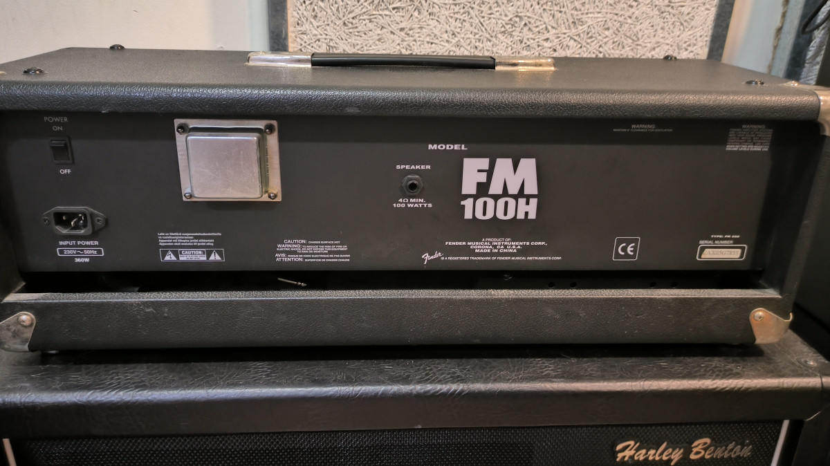 Vendo cabezal de guitarra Fender FM100H de transistores en excelentes condiciones. Es un cabezal de 100W con un diseño clásico y elegante.