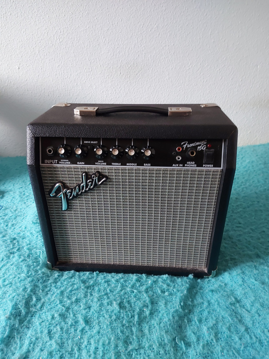 Amplificador Fender Frontman 15 g Ideal para ensayar en casa o en una pequeña sala .