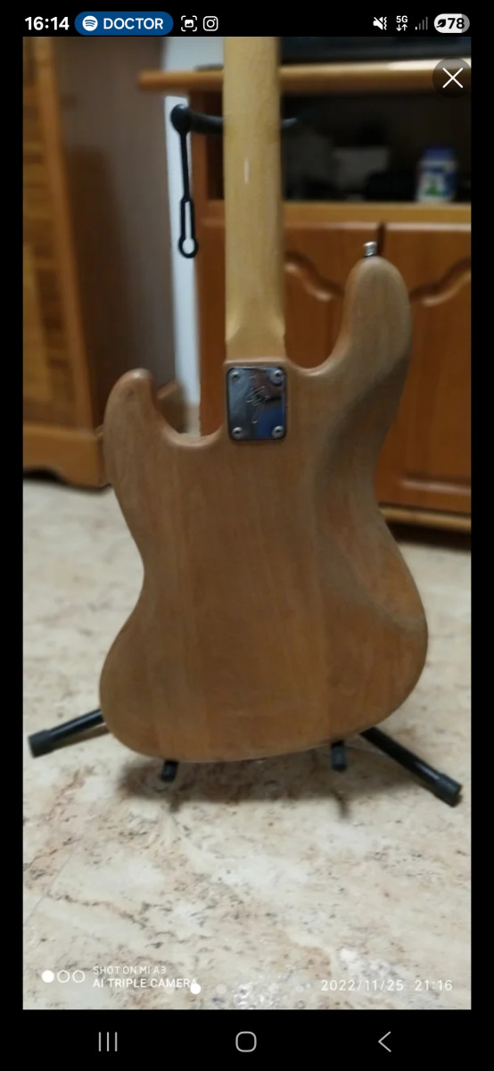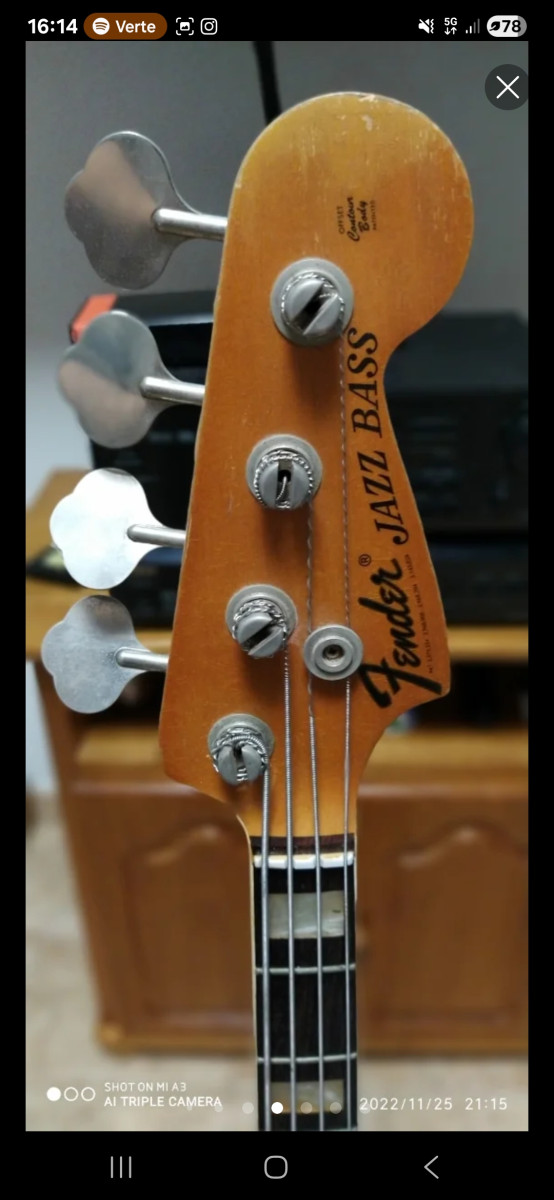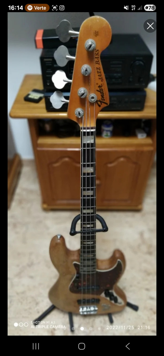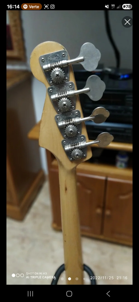 Bajazo , comodisimo y unico , pastillas originales pero rebobinadas , tiene puente original , aunque actualmente tiene un leo quan badass original de los 70 que para el que no lo sepa es el que pone marcus miller a sus bajos , junto con geddy lee , es un bajo decapado que lo decapo su anterior dueño y asi a mi me parece unico , la pala con ese coloe dorado anaranjado precioso natural , muy probable que lo quite de venta porque ya me estoy arrepintiendo al publicarll