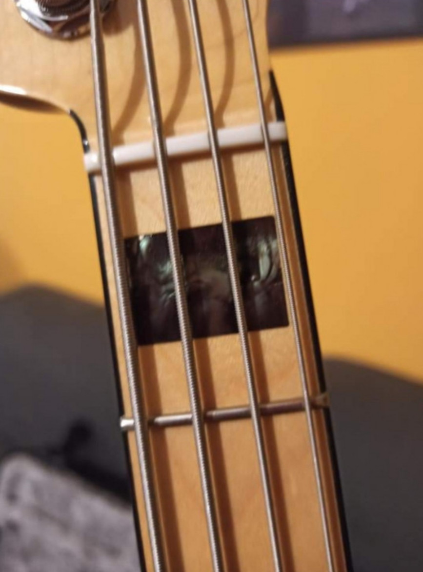 Los inlays son preciosos también de madre Perla y binding en el mástil. En persona es precioso la verdad. Suena y afina espectacular. Es el mejor bajo que he tenido entre mis manos pero lo vendo por falta de uso ya que el proyecto en el que lo usaba ya no existe.