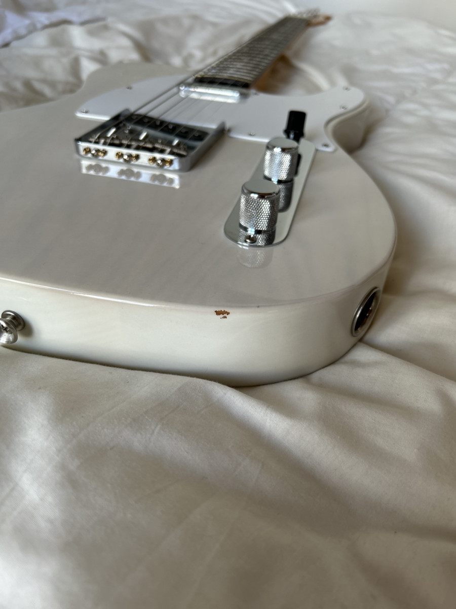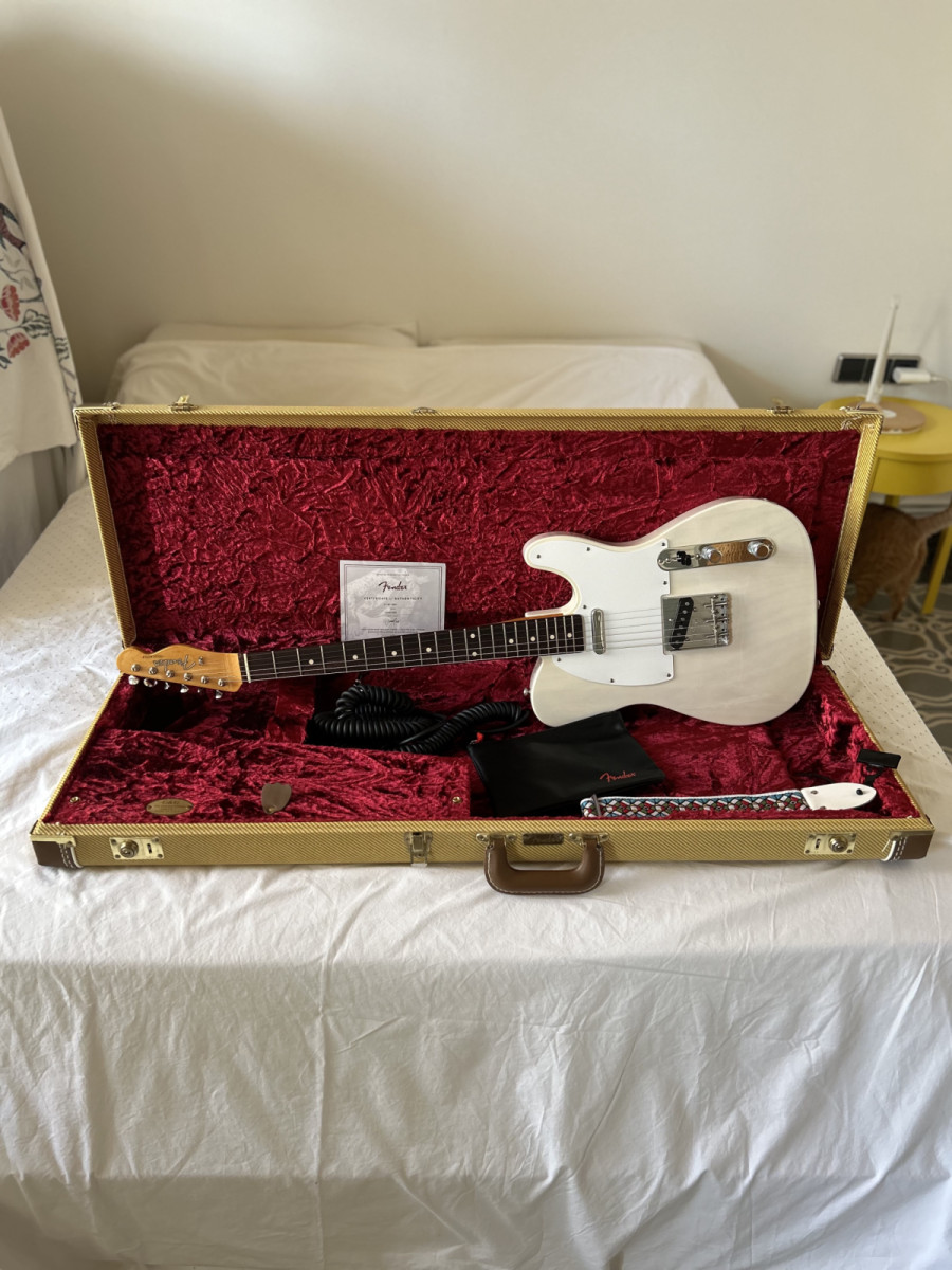 Espectacular, archiconocida y reverenciada. Con una capa súper fina de nitro que deja ver la veta de la madera del cuerpo, preciosa. Las pastillas son custom hechas especialmente para esta guitarra siguiendo las indicaciones de Jimmy Page y son una delicia, suenan maravillosas. Podéis ver y escuchar reviews en YouTube. El peso es muy bueno, 3,5kg. Tiene un pequeño toque en la parte de abajo del cuerpo que se ve en una de las fotos, pero a parte de eso está prácticamente nueva. Viene con su estuche original y todas las chuches (cable, correa, espejos y demás), todo a estrenar. Para cualquier pregunta, podéis escribirme. Gracias!