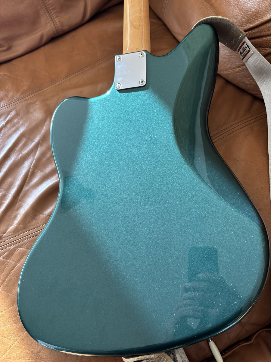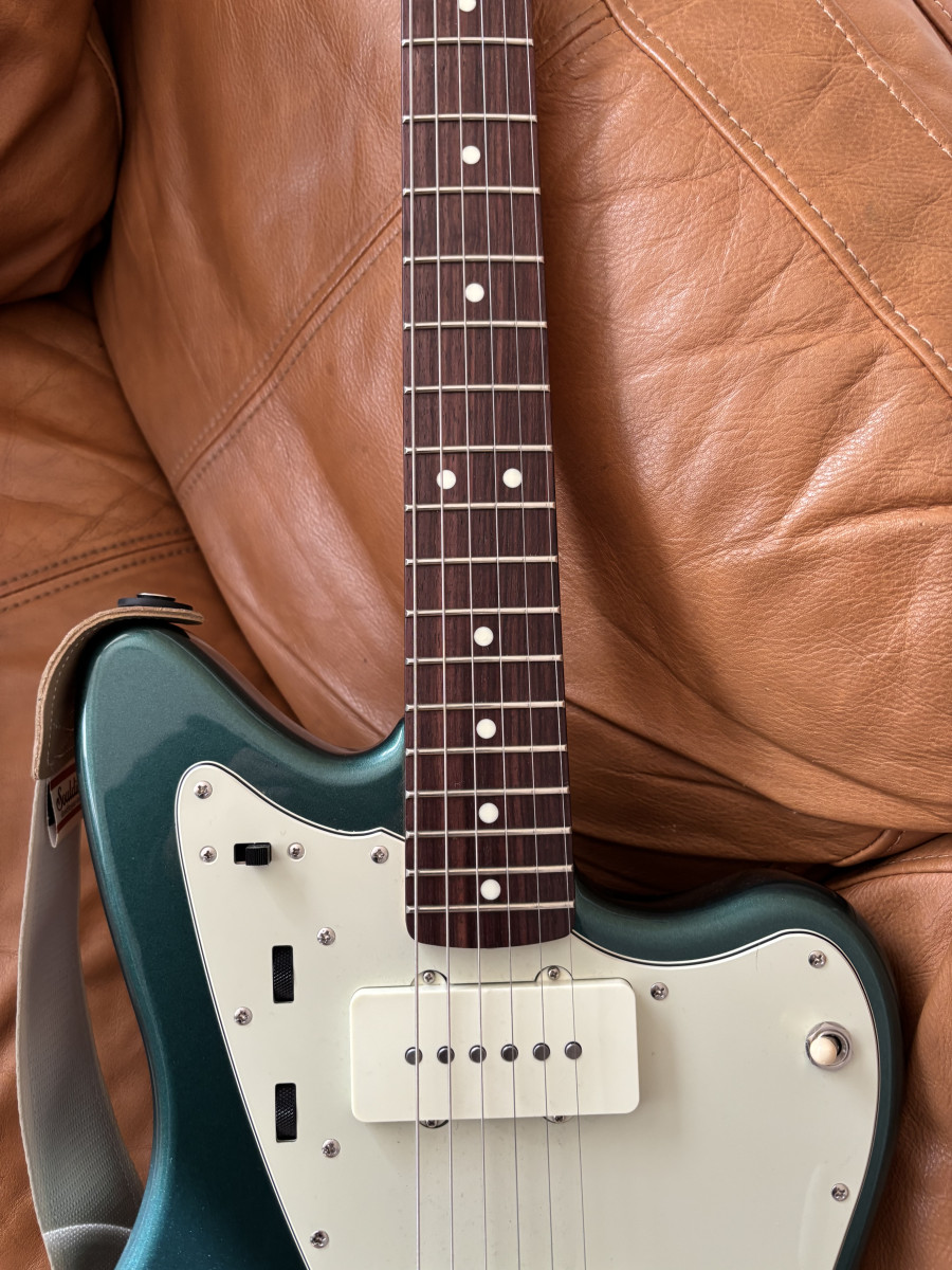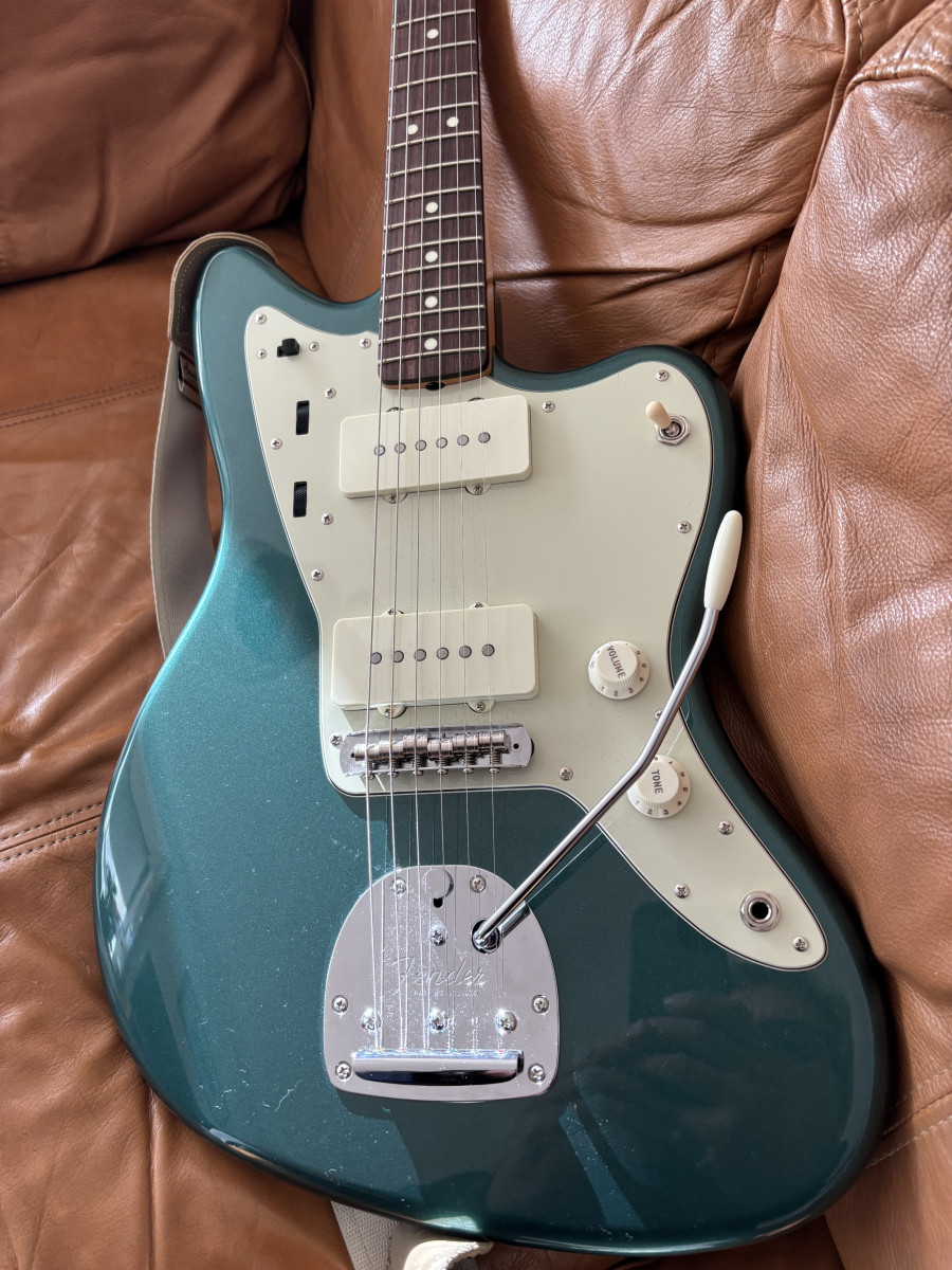 Vendo esta magnífica guitarra (No me interesa ningún tipo de CAMBIO) con un precioso acabado en Sherwood Green y diapasón de palisandro, esta versión de la Jazzmaster tradicional de los años 60 presenta algunas características de lujo que la distinguen de otras ofertas de la serie tradicional: incluyen el puente estilo Mustang con selletas de barril, cuerpo de aliso y trastes medium jumbo, pastillas Vintage Style rediseñadas, así como potenciómetros CTS fabricados en EE. UU., interruptores Switchcraft y demás piezas de plástico Fender USA.