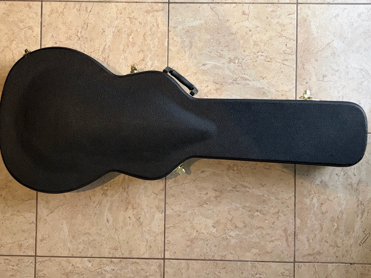 Cuerpo tipo parlor, muy cómoda y equilibrada, con tapa sólida de abeto Sitka y aros y fondo de caoba sólida.