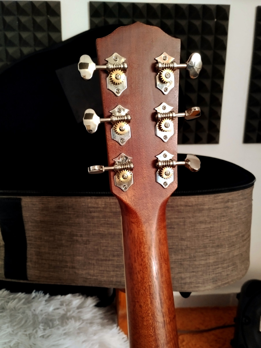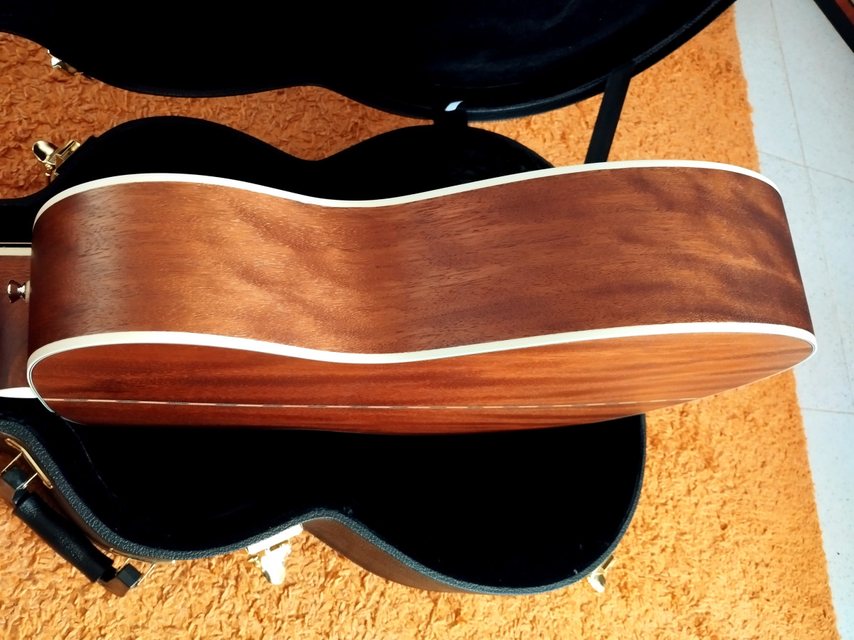 Afina perfecta por todo el diapasón y suena muy bien. Tiene un tamaño mediano muy cómodo y sin acoples. Las cuerdas están ajustadas bastante bajas y cómodas y lleva un 0'09 D'Addario nuevo.