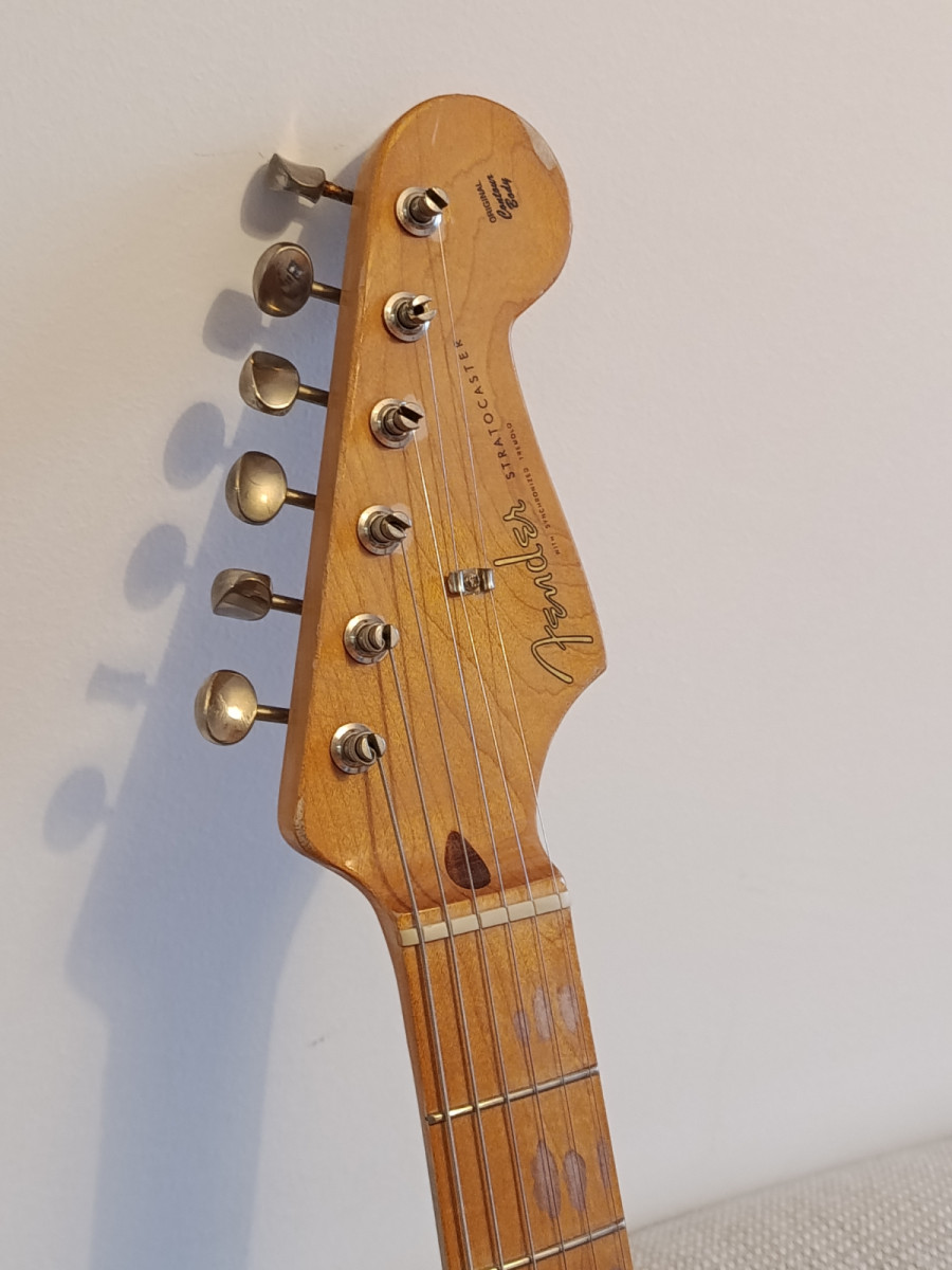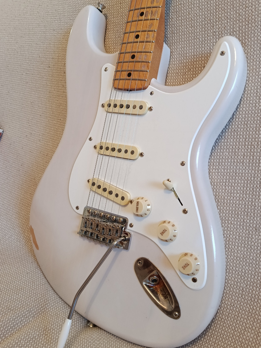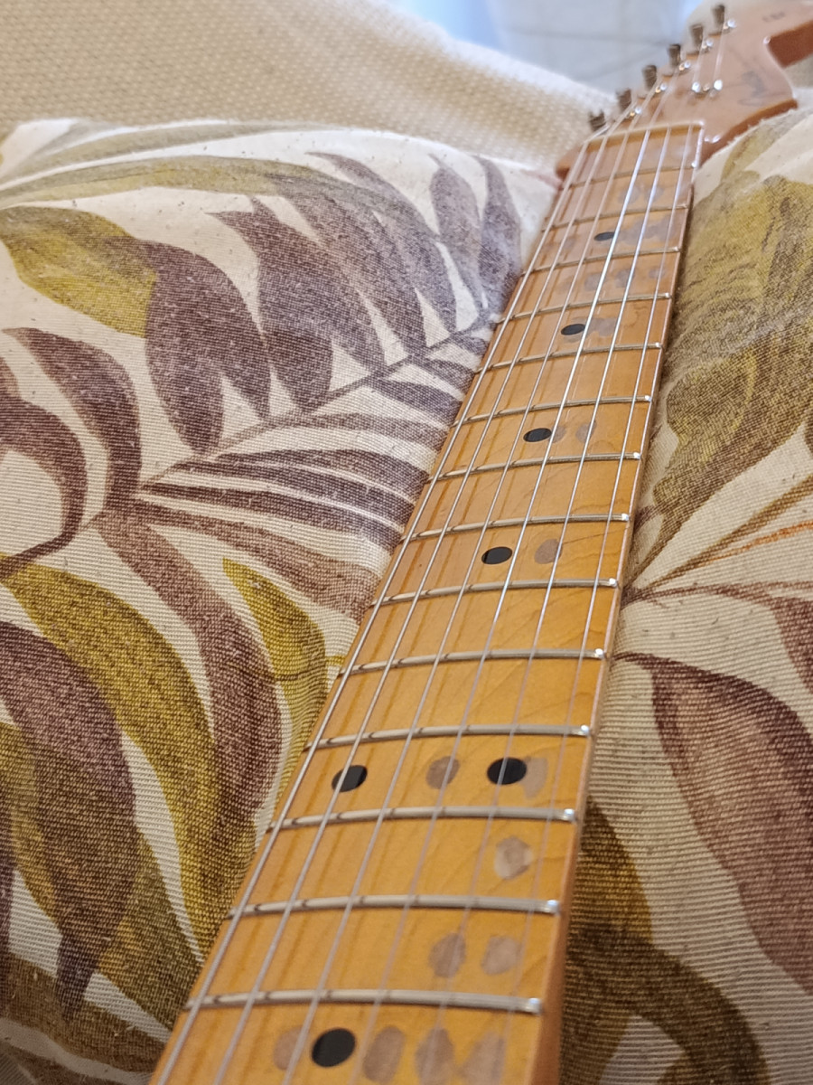 Guitarra Fender Stratocaster montada con mástil Fender Stratocaster classic 50 con relic artificial,los trastes están al 100x100. Cuerpo Squier classic vibe 50 de pino, decapado hasta la pintura con un soft relic. Re lacado en nitro. Golpeador completo de una Fender Vintera 70. Puente stratocaster ABM (160e) que funciona suave como la mantequilla. Para el envío irá en funda blanda y caja a medida. Para cualquier cosa no dudéis en contactar. CAMBIO SOLO por Fender telecaster classic/Vintera 50 o 60 o alguna Gretsch G5420t o G5410t.
