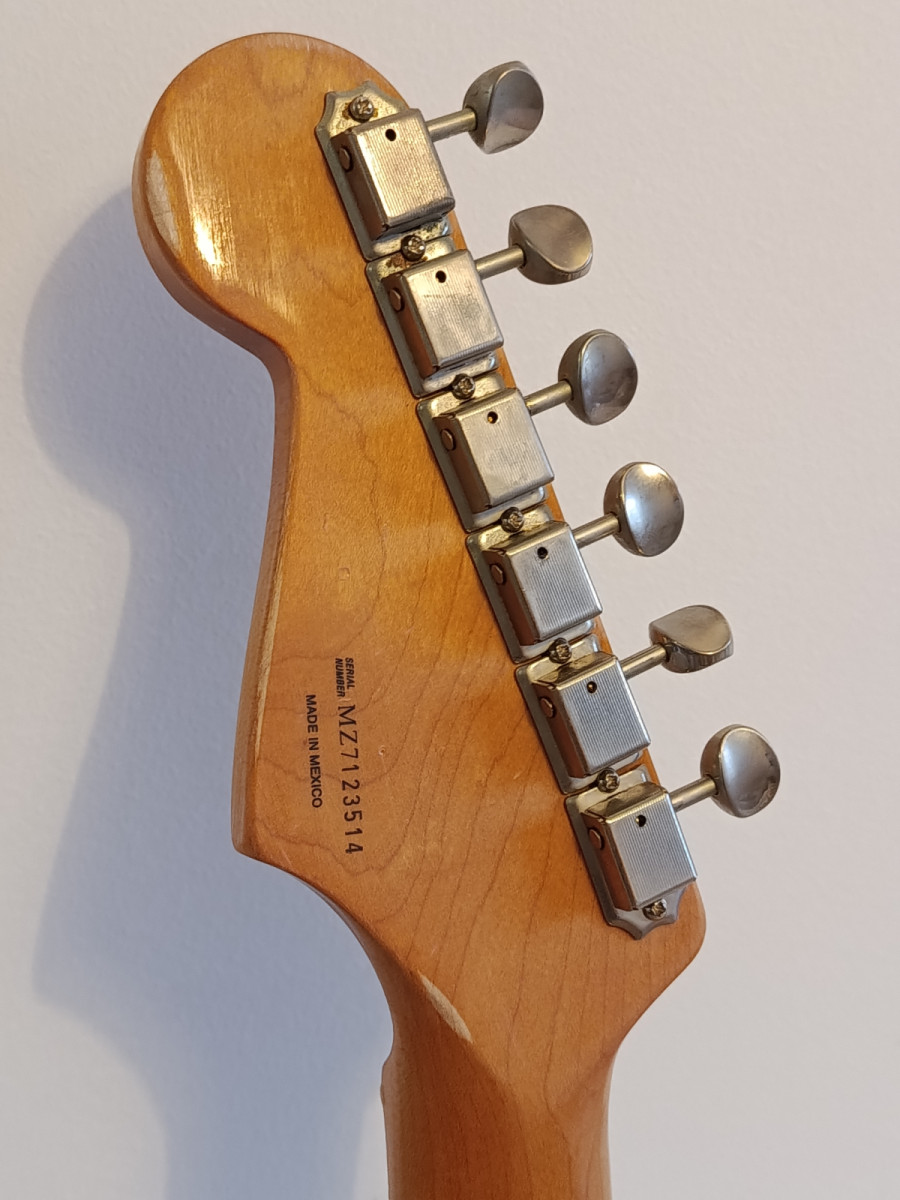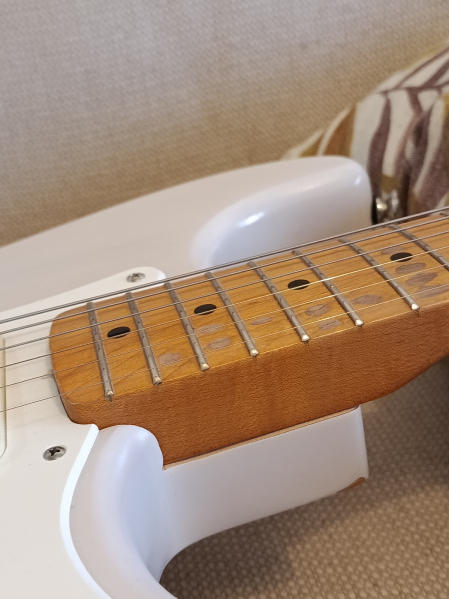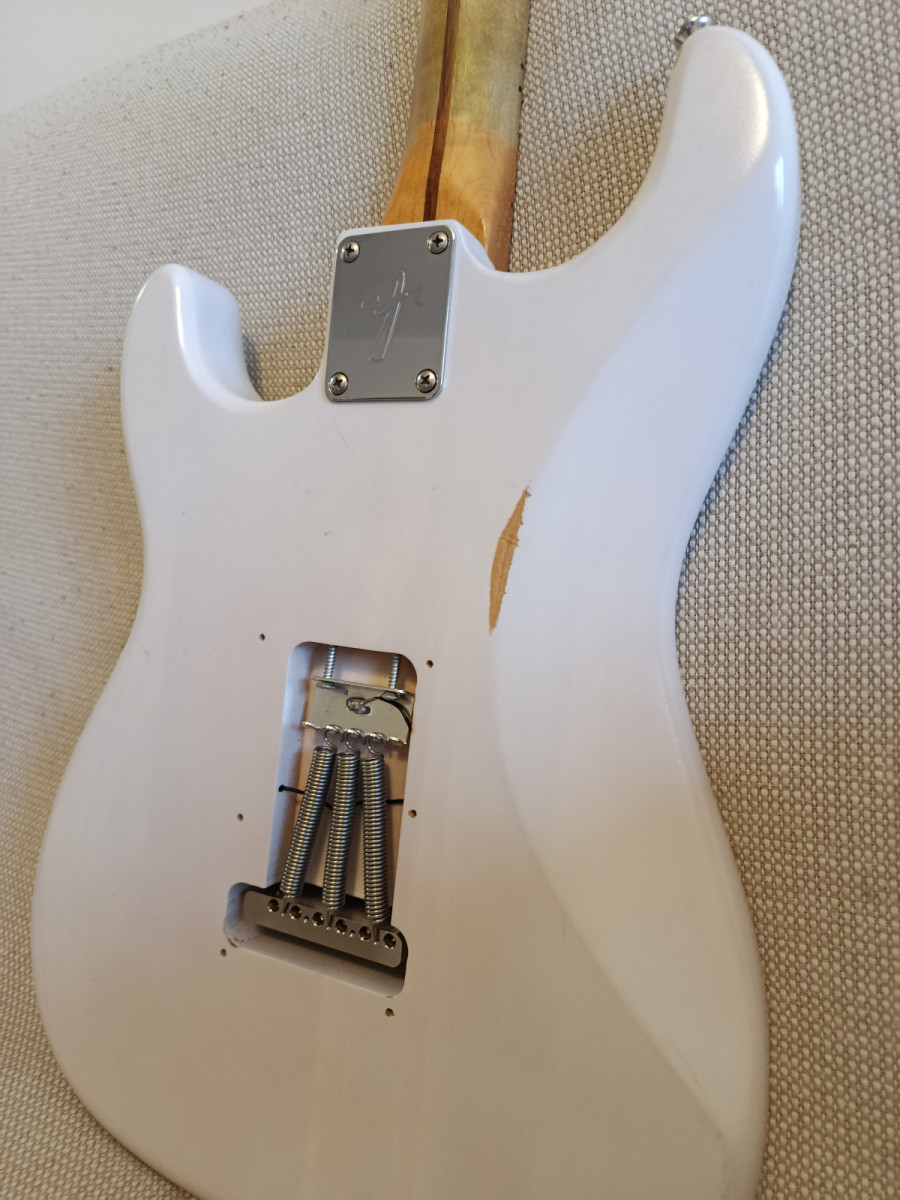 Guitarra Fender Stratocaster montada con mástil Fender Stratocaster classic 50 con relic artificial,los trastes están al 100x100. Cuerpo Squier classic vibe 50 de pino, decapado hasta la pintura con un soft relic. Re lacado en nitro. Golpeador completo de una Fender Vintera 70. Puente stratocaster ABM (160e) que funciona suave como la mantequilla. Para el envío irá en funda blanda y caja a medida. Para cualquier cosa no dudéis en contactar. CAMBIO SOLO por Fender telecaster classic/Vintera 50 o 60 o alguna Gretsch G5420t o G5410t.