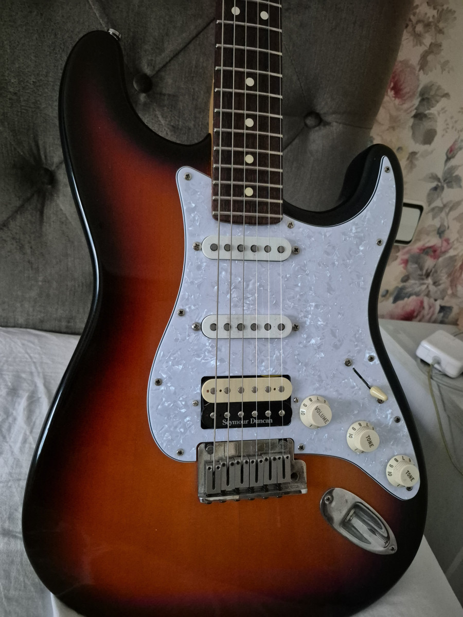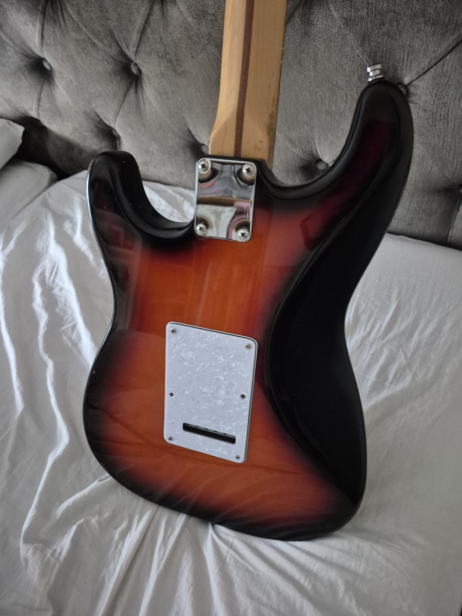 - Cuerpo Fender Strat Plus 2001 sunburst impecable (routing piscina, la guitarra entera original era de un amigo, tengo fotos del mastil original)