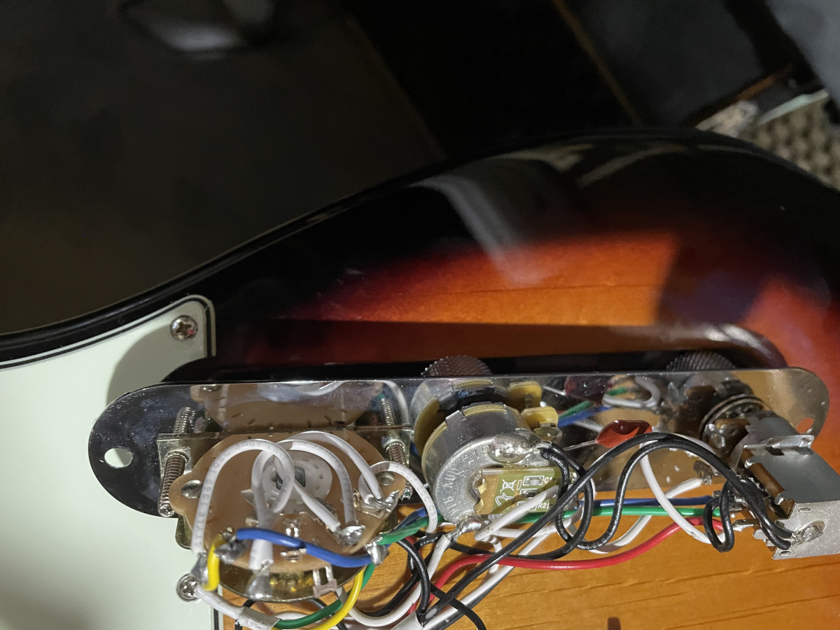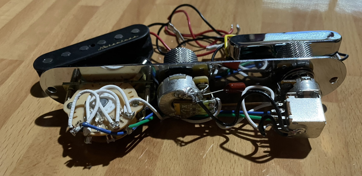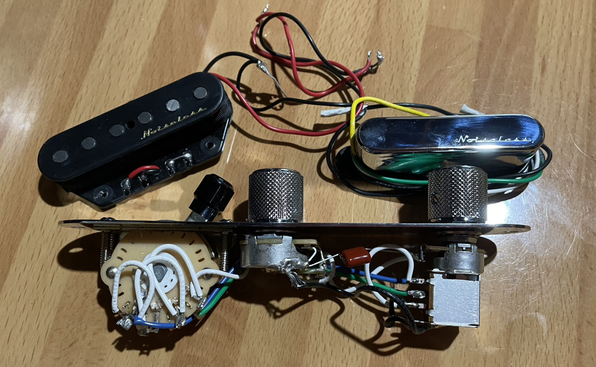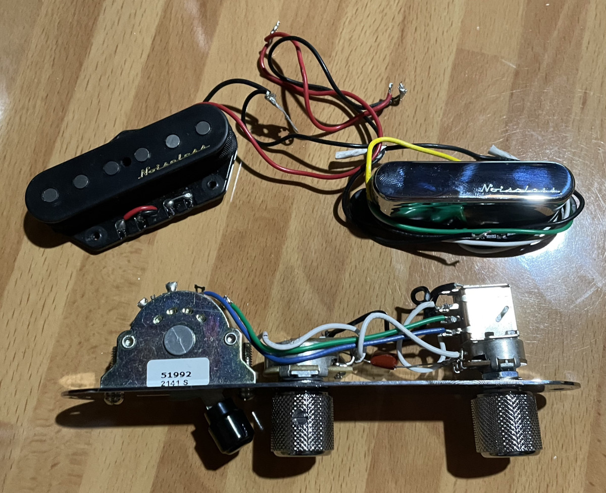 Extraidas de una Fender Telecaster Player Plus nueva. Incluye dos pastillas Noiseless y una placa electrónica completa con potenciómetros y selector. listo para instalar. Push-pull en tono para poner en serie las 2 pastillas con sonido tipo humbucker, Treble Bleed en circuito que funciona realmente bien.