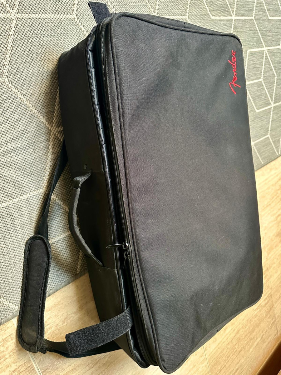 FENDER Pedal board como nueva solo se le ha puesto el velcro para adherir los pedales la fuente de alimentación no va incluida la vendo aparte si la quieres se puede incluir añadiendo su coste.