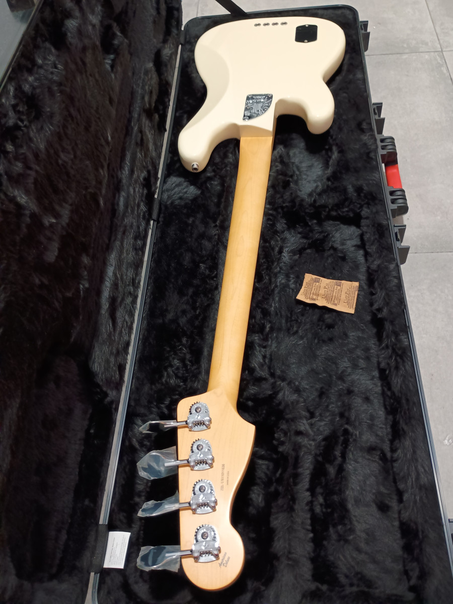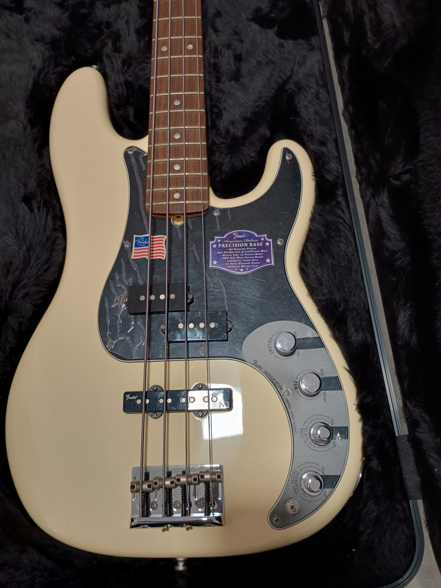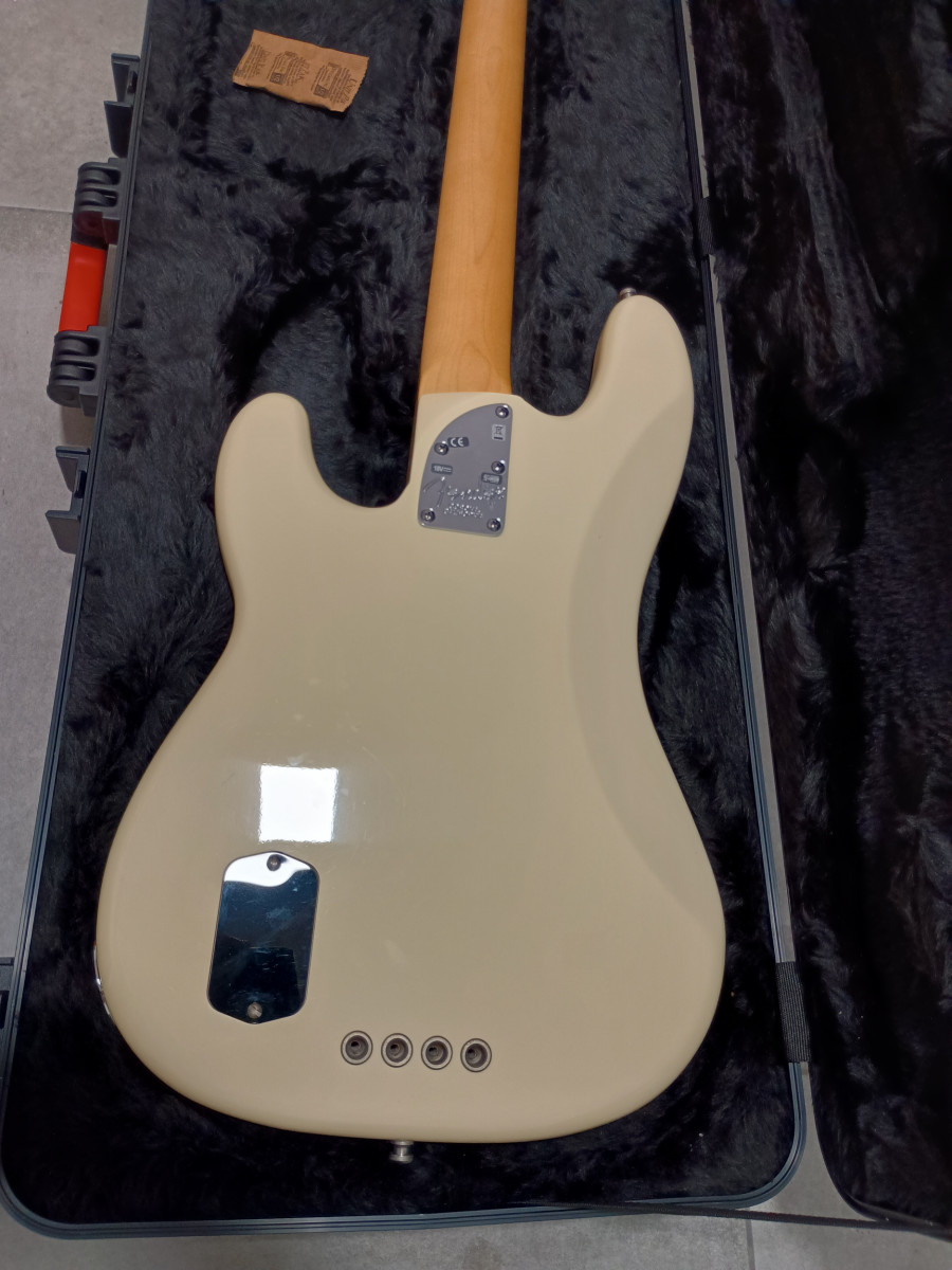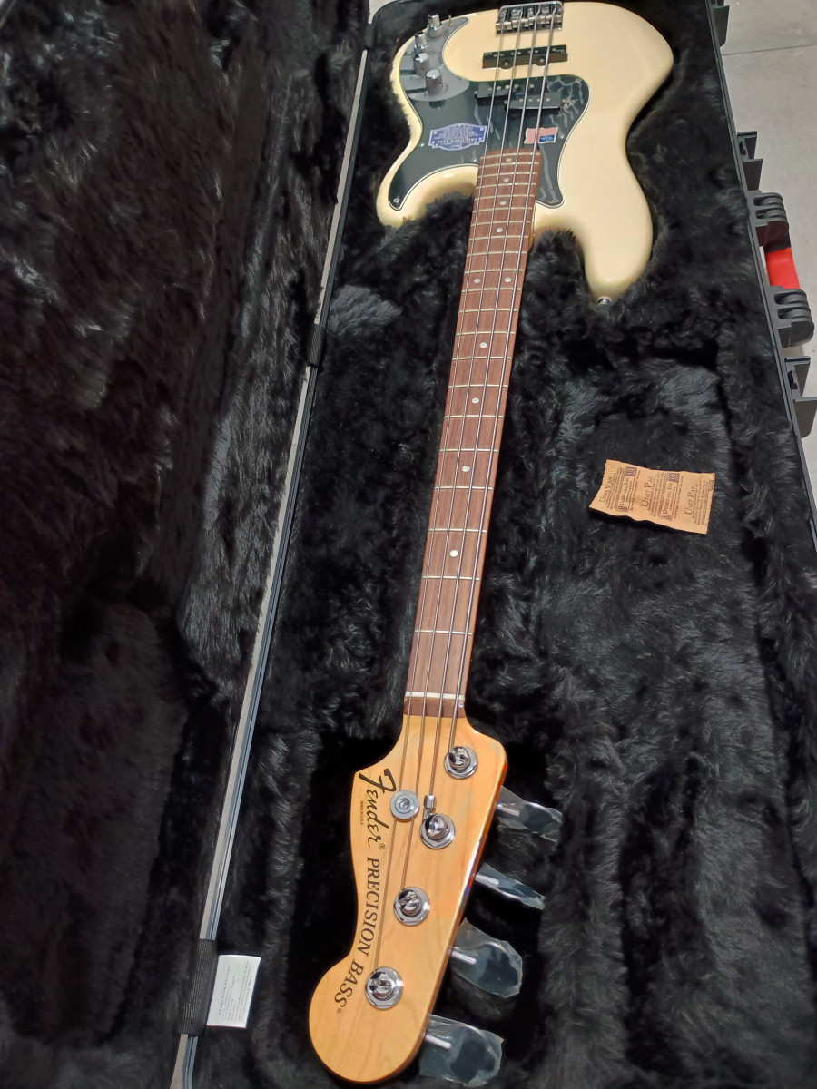 - Bajo eléctrico Fender American Deluxe en color crema. Incluye funda rígida.