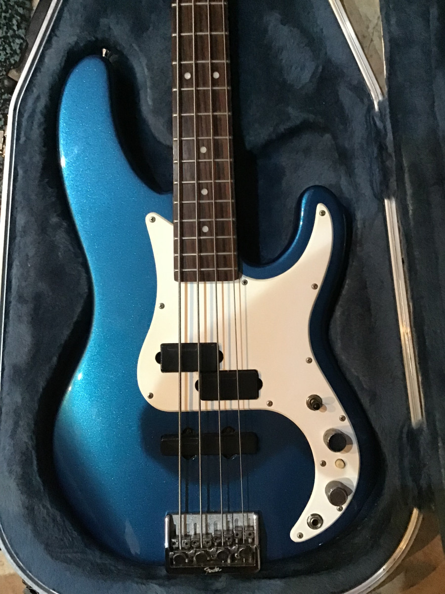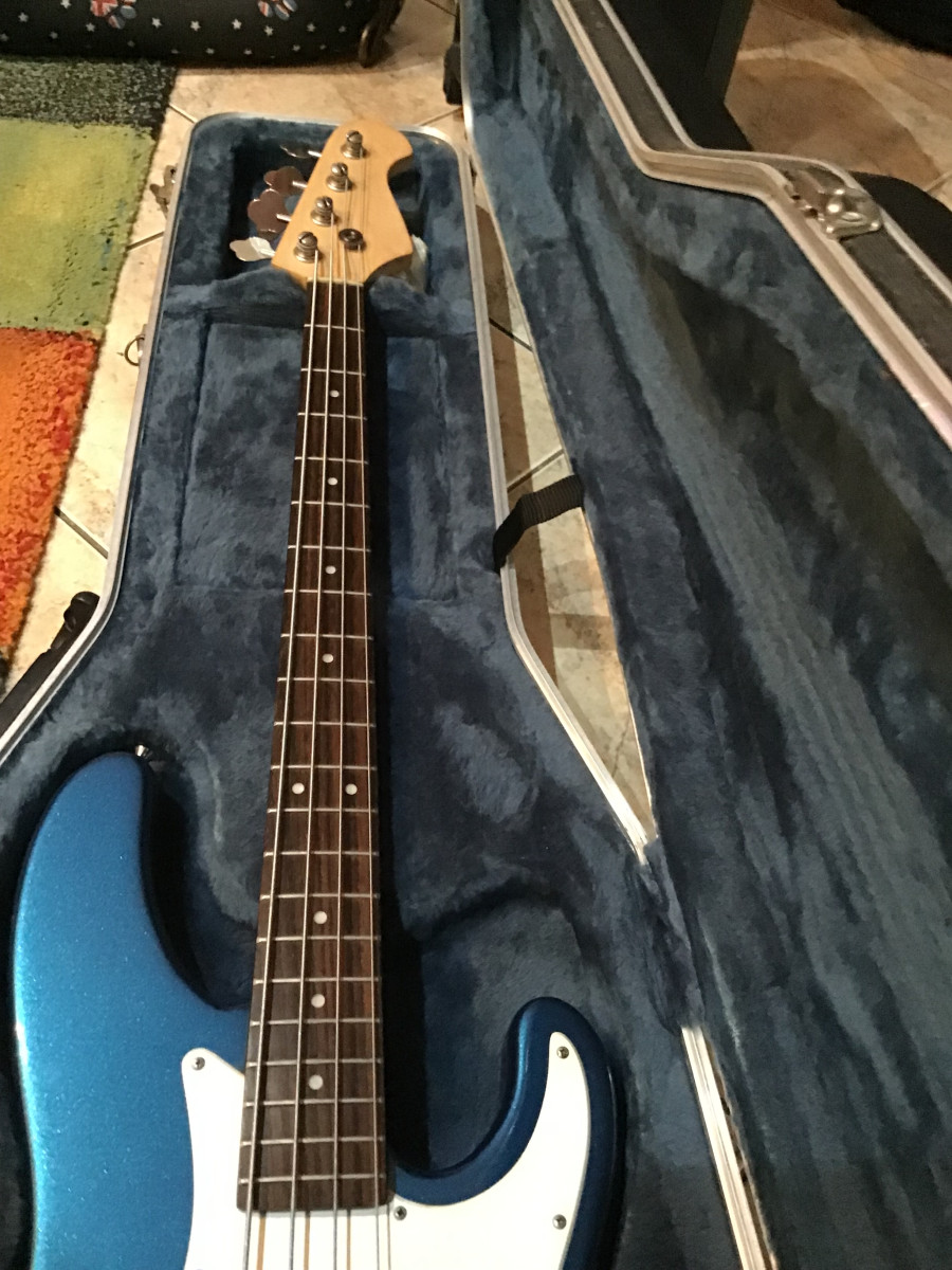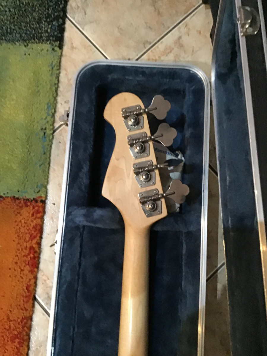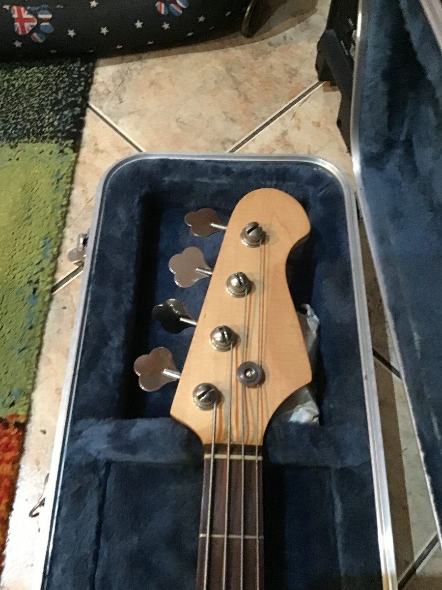 Actualmente no tocó el bajo y lo tengo guardado en un estuche de la época,le he puesto cuerdas nuevas 0.45 - 105, suena que no te lo crees brutal ,electrónica repasada se le cambio pote de tono doble por recambio Fender original,va con estuche duro.
