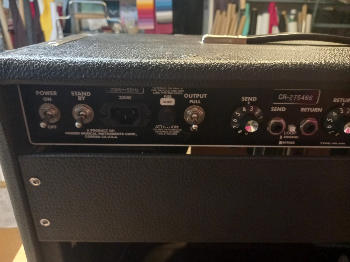 Pedazo de ampli( 39 kg) fender con sonidazo clásico. Fundamentalmente es un twin amp, pero con 1 cono y 50 watts( reducibles a 1/4 de serie).