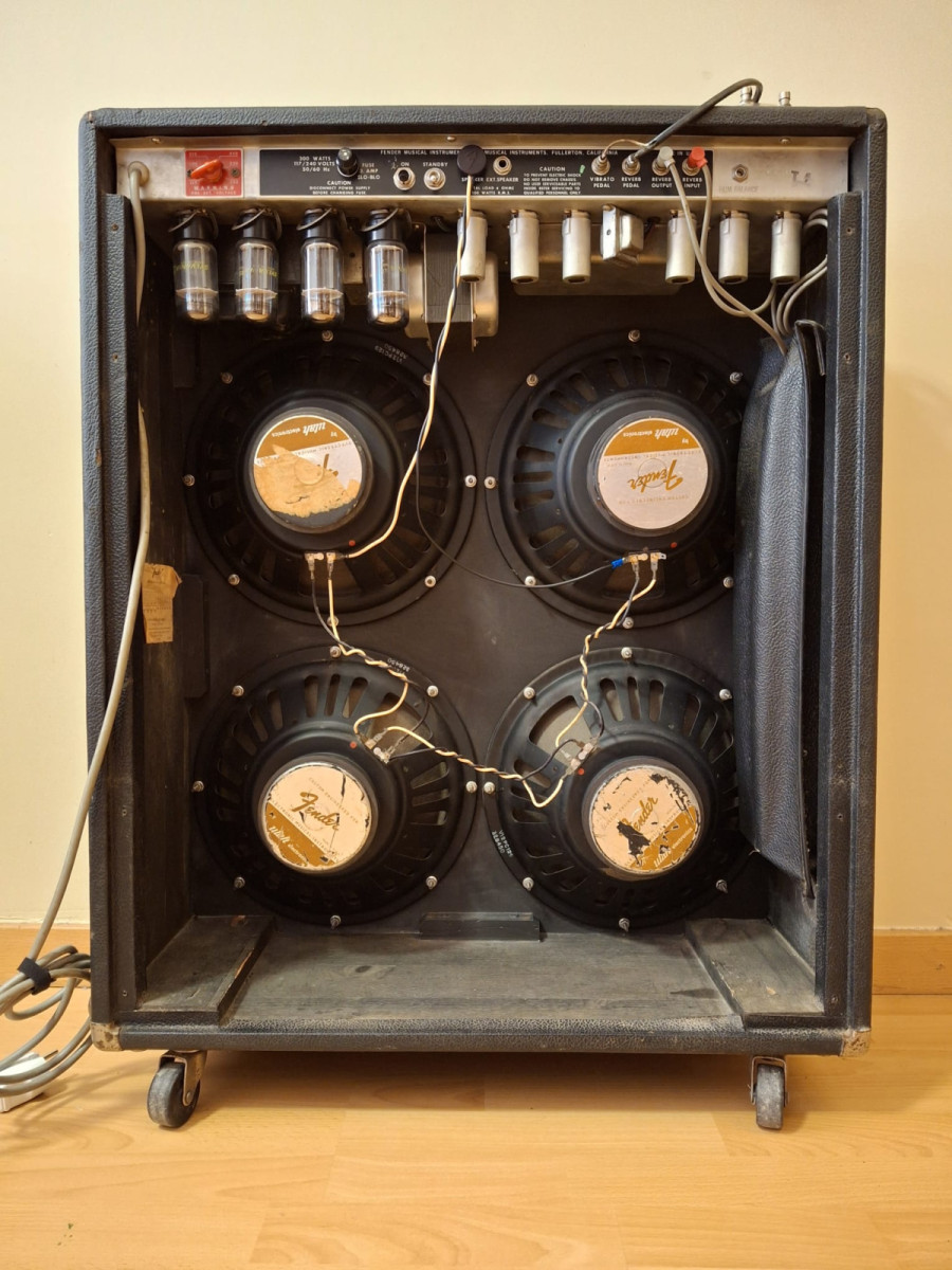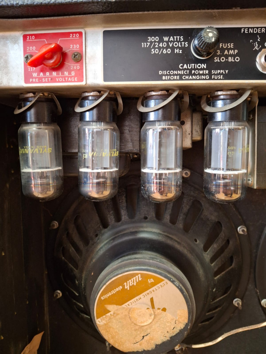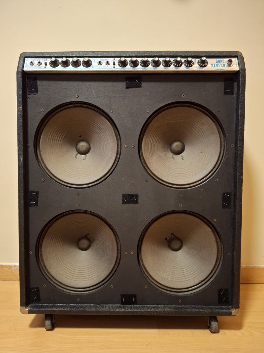 Se trata de una versión muy rara y muy buscada del Fender Quad Reverb, ya que viene equipada con altavoces Fender Utah, en lugar de la configuración más habitual con los Jensen. Además, cuenta con un juego de válvulas de potencia NOS Sylvania 6L6GC, que ofrecen una calidez, plenitud y tridimensionalidad increíbles.